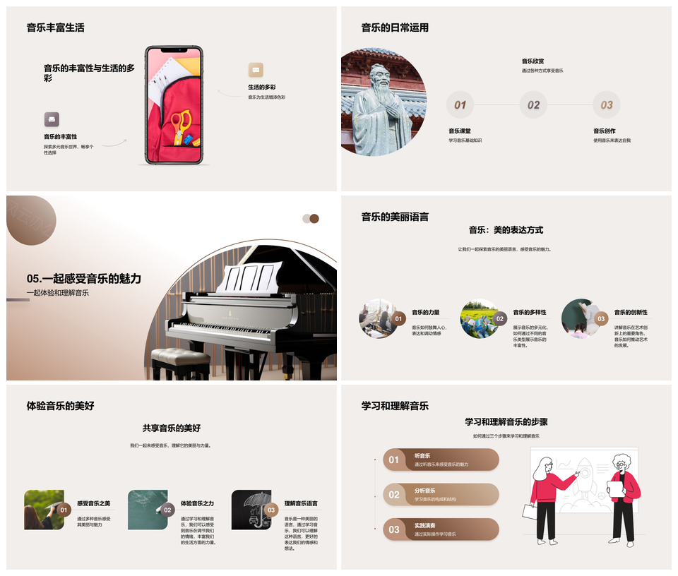 这是一张音乐从基础到历史种类作用丰富生活PPT模板,包含音乐、基础、历史、种类、作用、丰富、生活等主题内容,也可用作音乐基础历史种类、基础历史种类作用、历史种类作用丰富、种类作用丰富生活、音乐基础历史、基础历史种类、历史种类作用、种类作用丰富、作用丰富生活、音乐基础、基础历史、历史种类、种类作用、作用丰富、丰富生活等PPT场景使用。