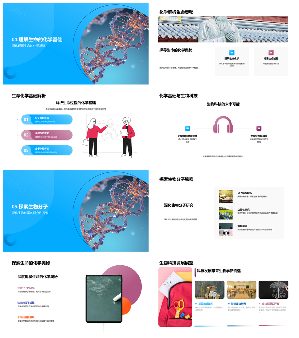 这是一张生物分子化学密码DNA双螺旋引领未来科技PPT模板,包含生物分子、化学、密码、DNA、双螺旋、未来、科技等主题内容,也可用作生物分子化学密码DNA双螺旋引领未来科技、生物分子化学密码DNA、密码DNA双螺旋引领、双螺旋引领未来科技、生物分子DNA双螺旋引领、生物分子化学密码、化学密码DNA双螺旋、DNA双螺旋引领未来、双螺旋引领未来、引领未来科技、生物分子化学、生物分子密码、生物分子DNA、生物分子双螺旋、化学密码等PPT场景使用。 风云办公提供的生物分子化学密码DNA双螺旋引领未来科技PPT模板,下载格式为pptx,一共26页,作品中文字及图均可以修改和编辑,图片更改请在作品中右键图片并更换,文字修改请直接点击文字进行修改。