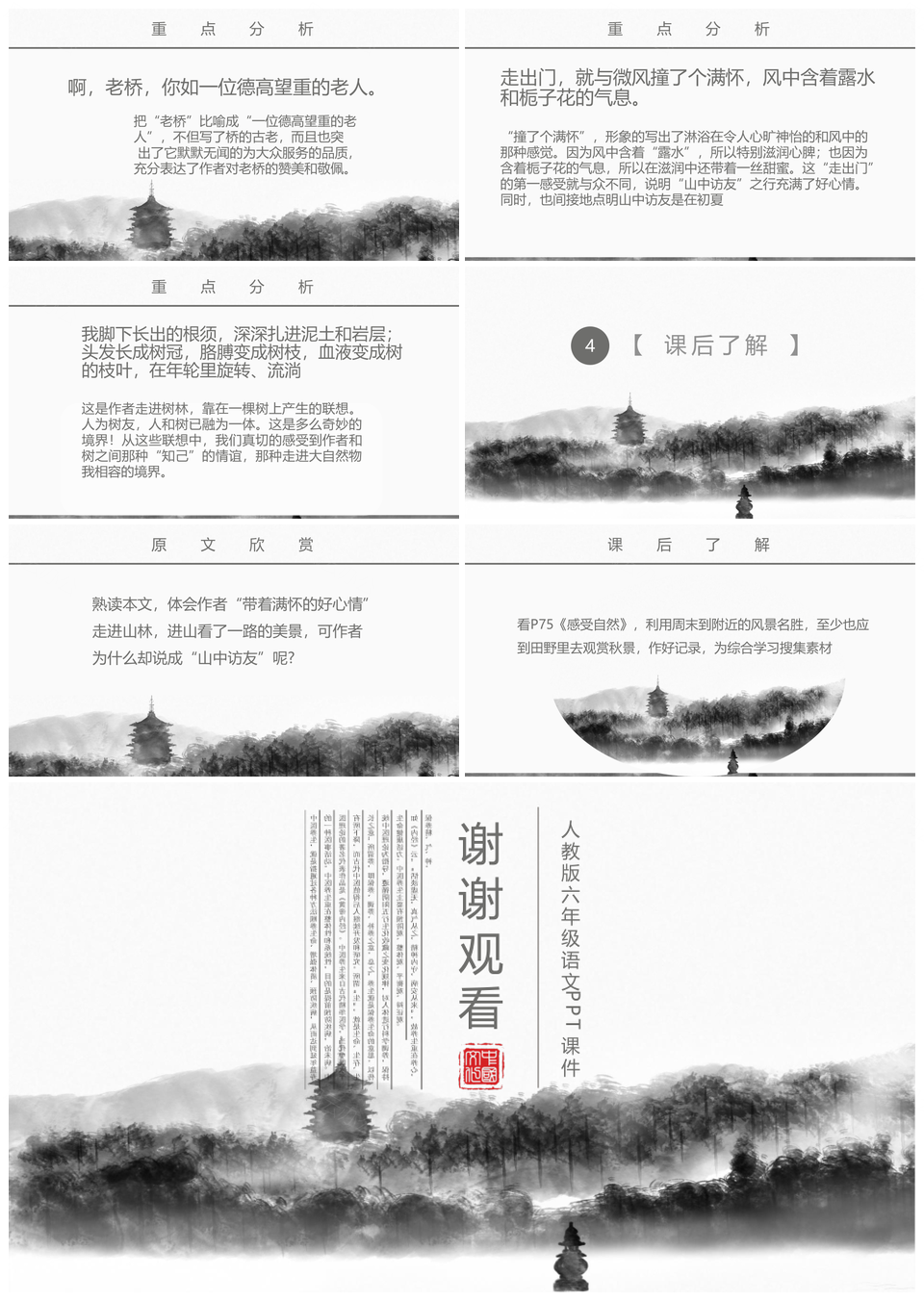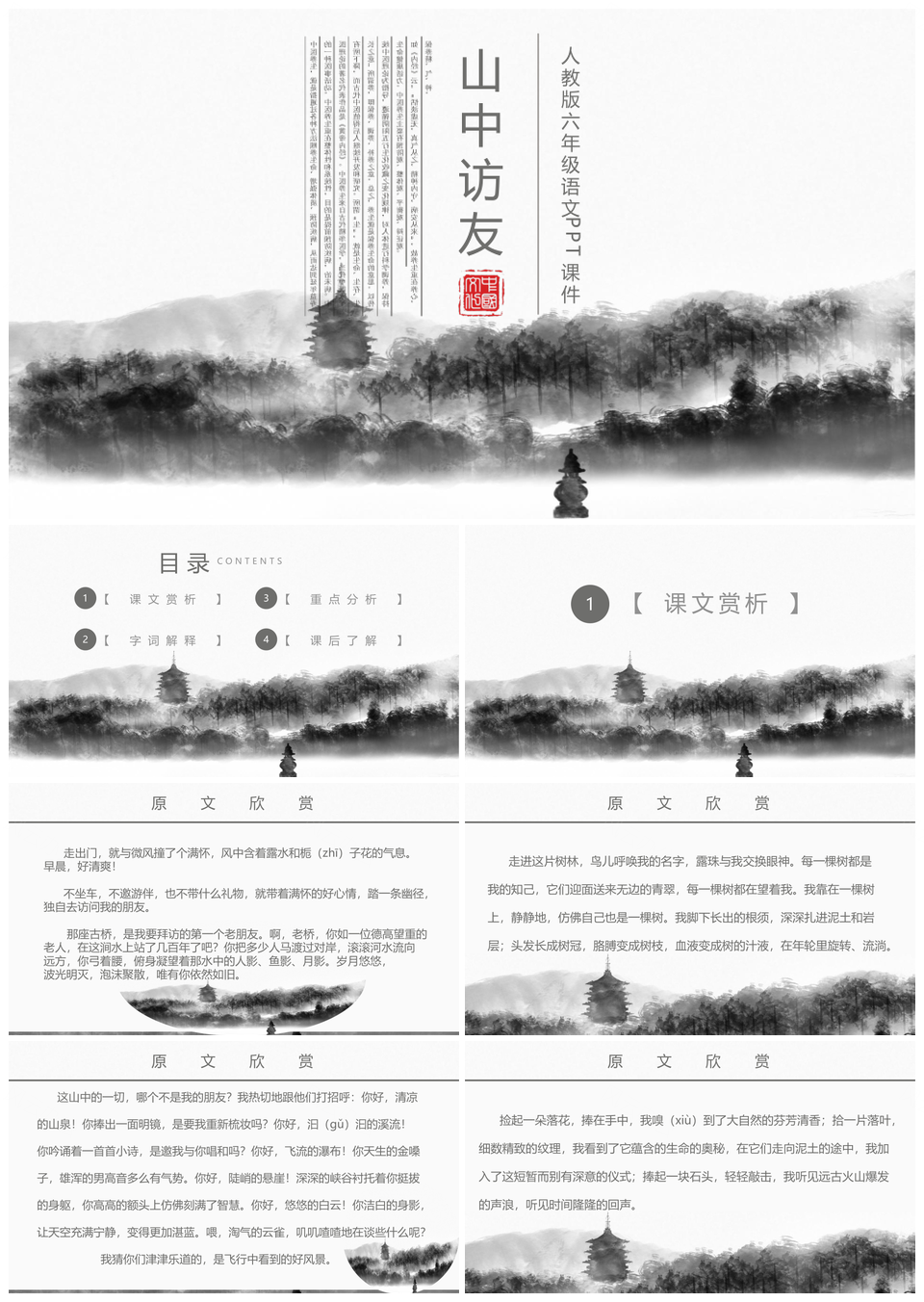 人教版六年级语文课件山中访友PPT模板推荐
