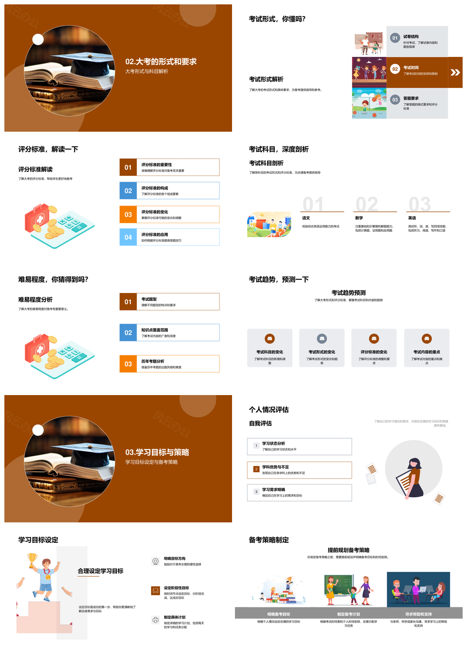 风云办公提供的高三大考策略备考目标与毕业成果PPT模板,下载格式为pptx,一共31页,作品中文字及图均可以修改和编辑,图片更改请在作品中右键图片并更换,文字修改请直接点击文字进行修改。