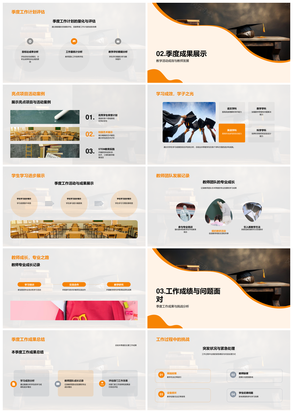2025部门季度工作总结成果挑战未来教学计划PPT模板