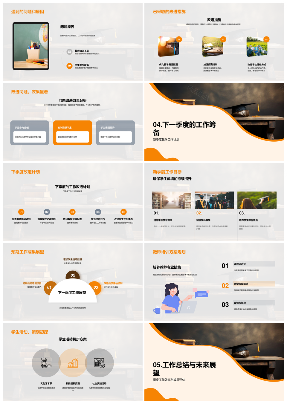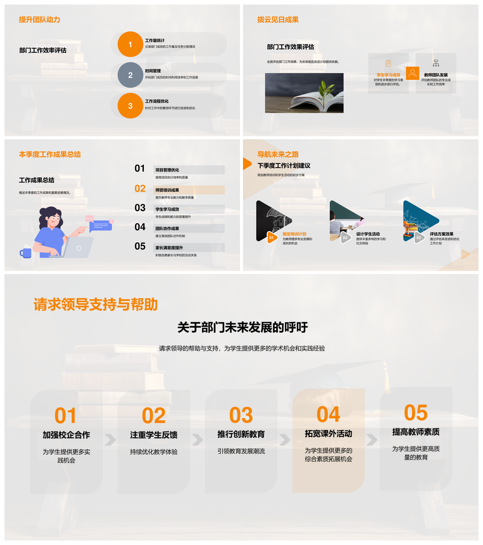 部门季度教学实效师生发展案例总结改进PPT模板推荐