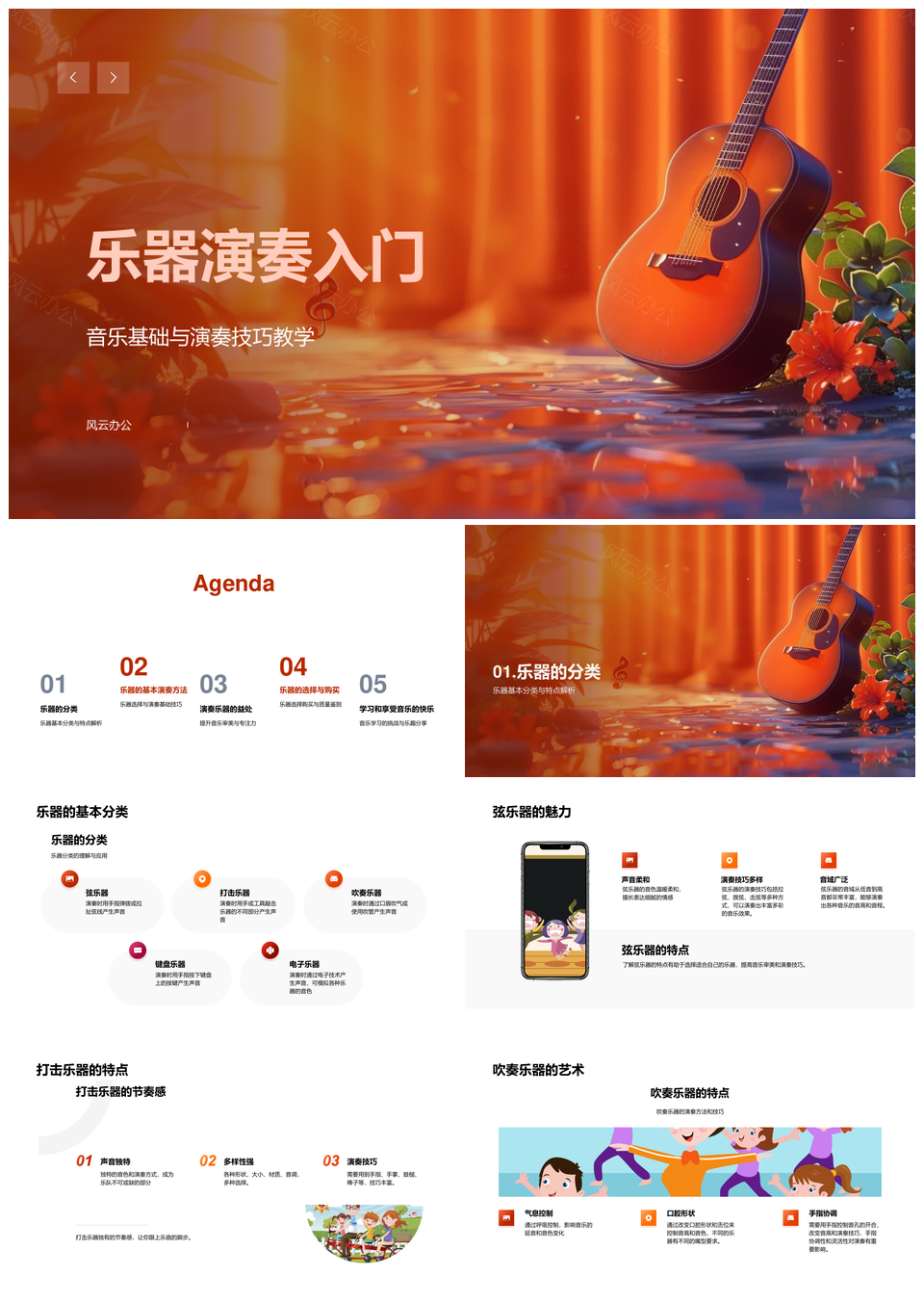 风云办公提供的乐器分类选择音乐基础演奏技巧入门PPT模板,下载格式为pptx,一共27页,作品中文字及图均可以修改和编辑,图片更改请在作品中右键图片并更换,文字修改请直接点击文字进行修改。