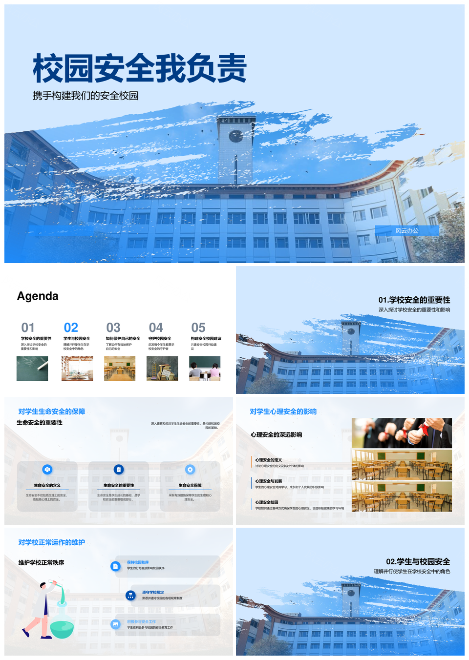 风云办公提供的学生安全教育守护生命心理安全应对PPT模板,下载格式为pptx,一共23页,作品中文字及图均可以修改和编辑,图片更改请在作品中右键图片并更换,文字修改请直接点击文字进行修改。