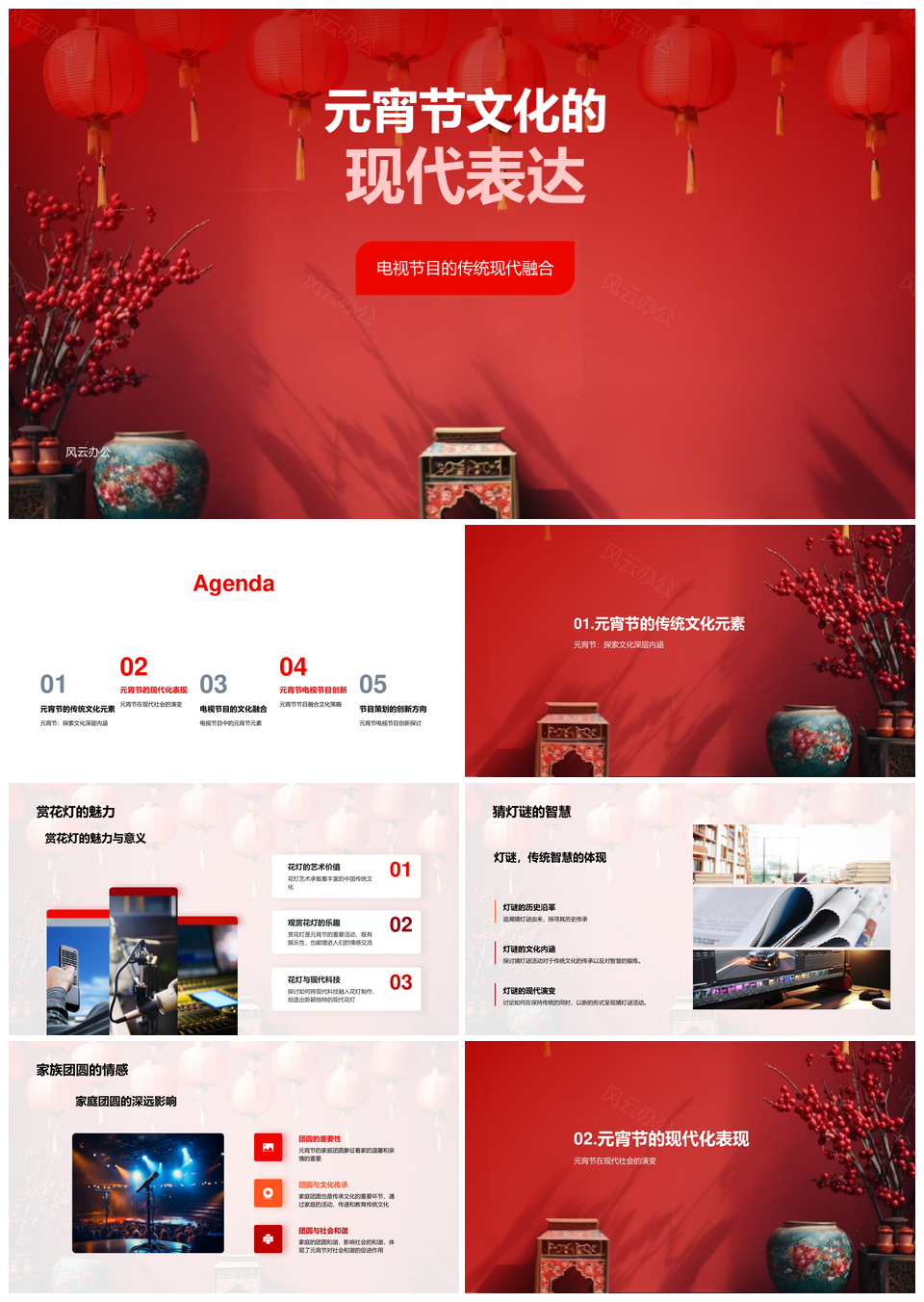 风云办公提供的元宵荧屏融传统灯谜花灯焕现代PPT模板,下载格式为pptx,一共23页,作品中文字及图均可以修改和编辑,图片更改请在作品中右键图片并更换,文字修改请直接点击文字进行修改。