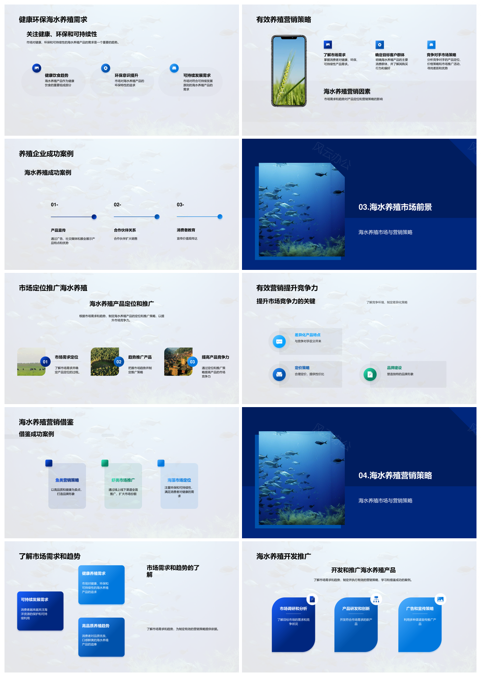 风云办公提供的海洋宝藏养殖产业未来市场趋势PPT模板,下载格式为pptx,一共20页,作品中文字及图均可以修改和编辑,图片更改请在作品中右键图片并更换,文字修改请直接点击文字进行修改。