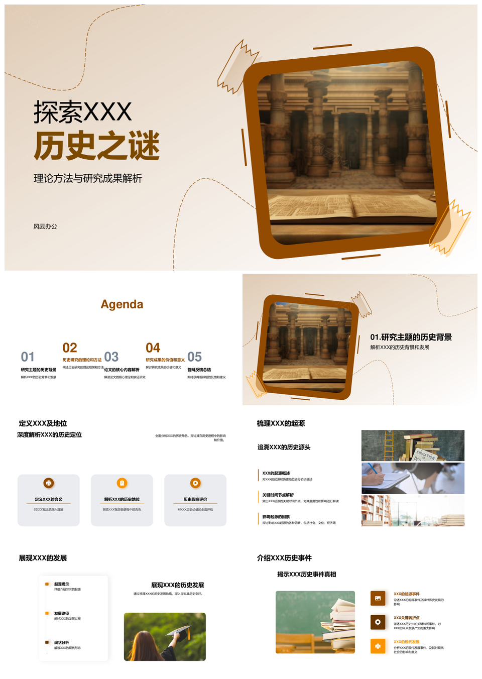 古老卷轴XXX历史发展理论方法与实证研究PPT模板推荐