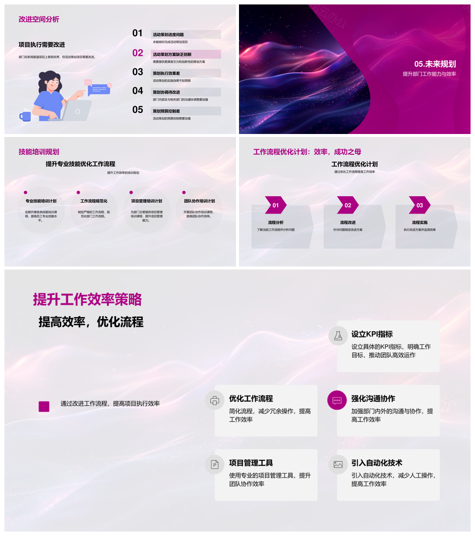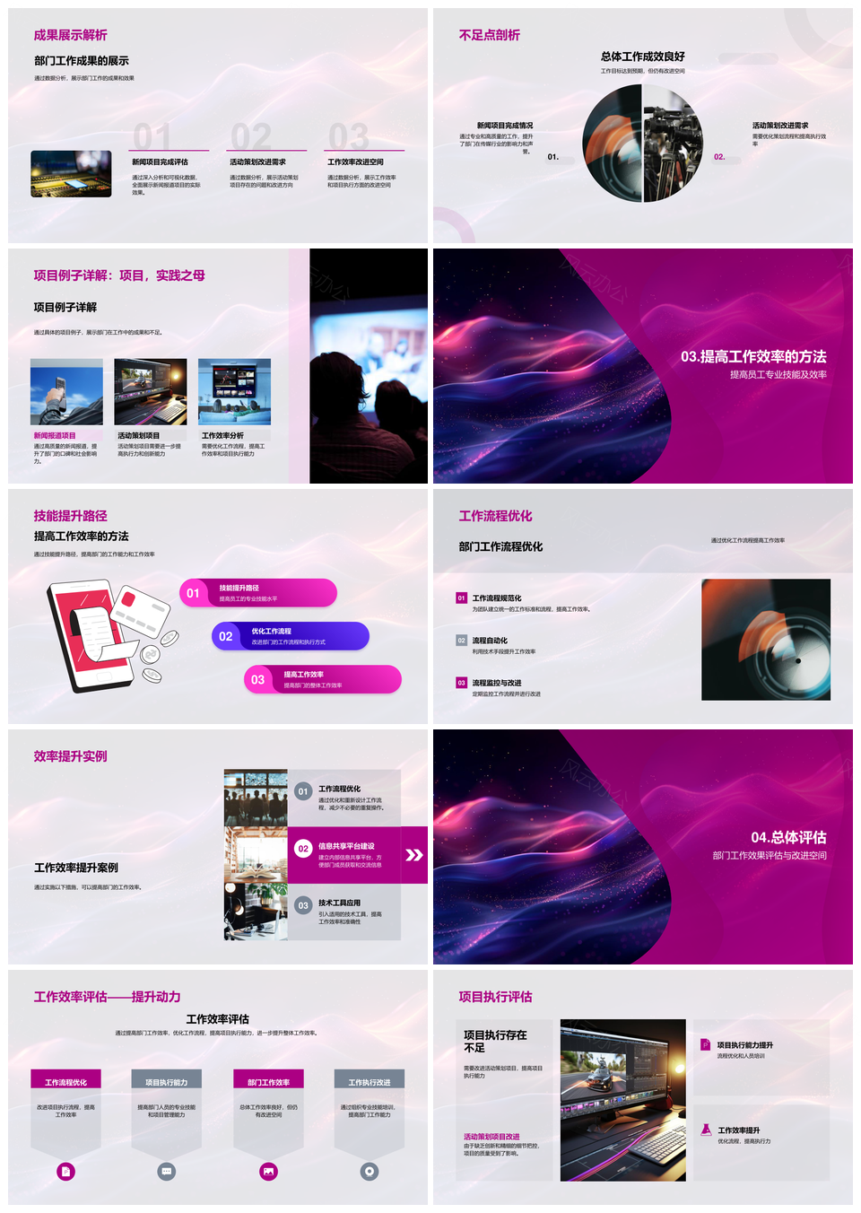 这是一张媒体部门季度项目成效改进策略分析汇报PPT模板,包含媒体部门、季度项目、成效改进、策略分析、汇报等主题内容,也可用作媒体部门季度项目成效改进策略、部门季度项目成效改进策略分析、季度项目成效改进策略分析汇报、媒体部门项目成效改进策略分析、部门项目成效改进策略分析汇报、媒体季度项目成效改进策略分析、季度成效改进策略分析汇报、媒体部门季度成效改进策略、部门季度成效改进策略分析、季度项目成效改进策略汇报、项目成效改进策略分析汇报、媒体部门季度项目成效、部门季度项目成效改进、季度项目成效改进策略、项目成效改进策略分析、成效改进策略分析汇报等PPT场景使用。 风云办公提供的媒体部门季度项目成效改进策略分析汇报PPT模板,下载格式为pptx,一共23页,作品中文字及图均可以修改和编辑,图片更改请在作品中右键图片并更换,文字修改请直接点击文字进行修改。