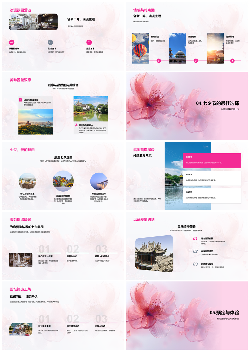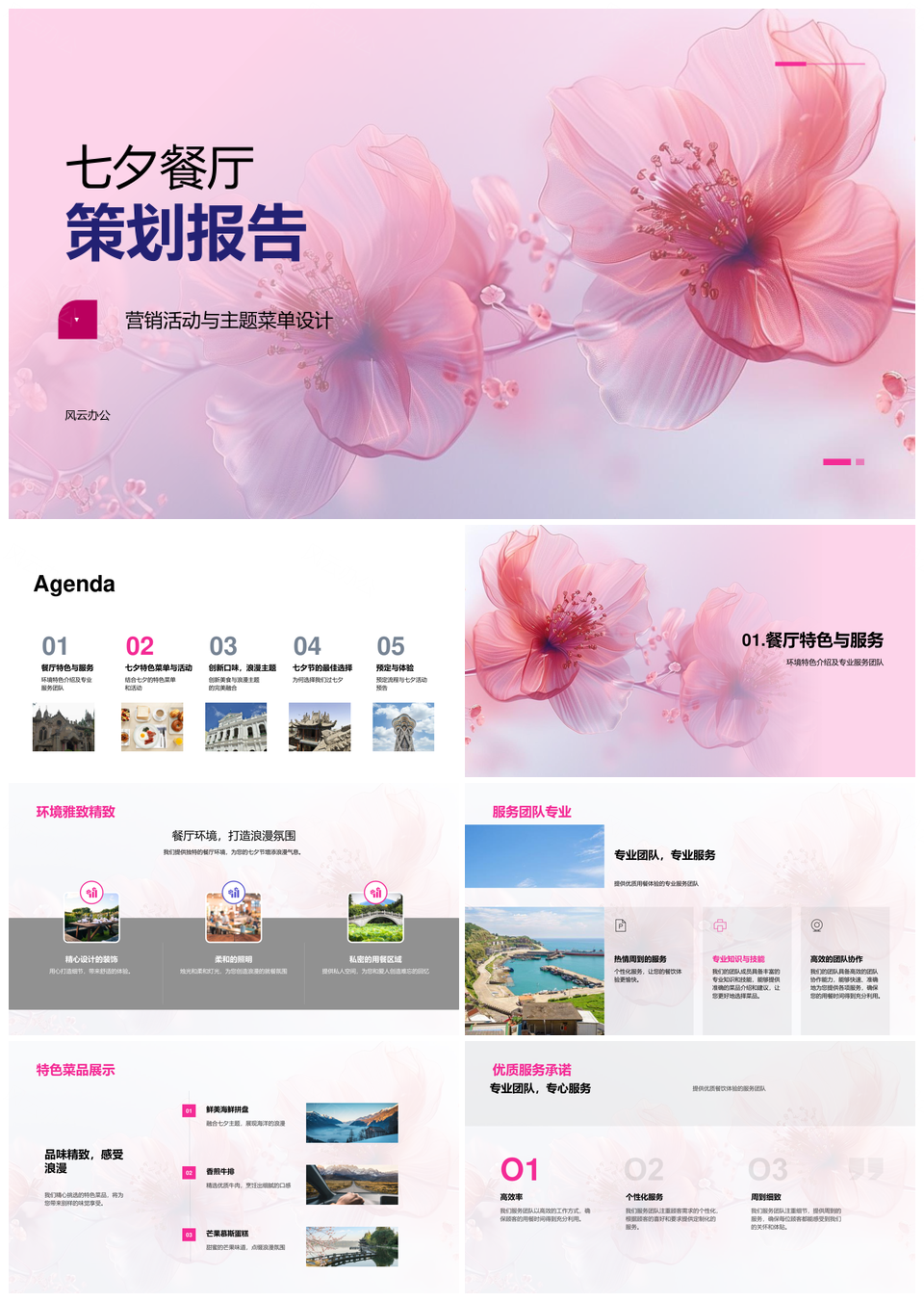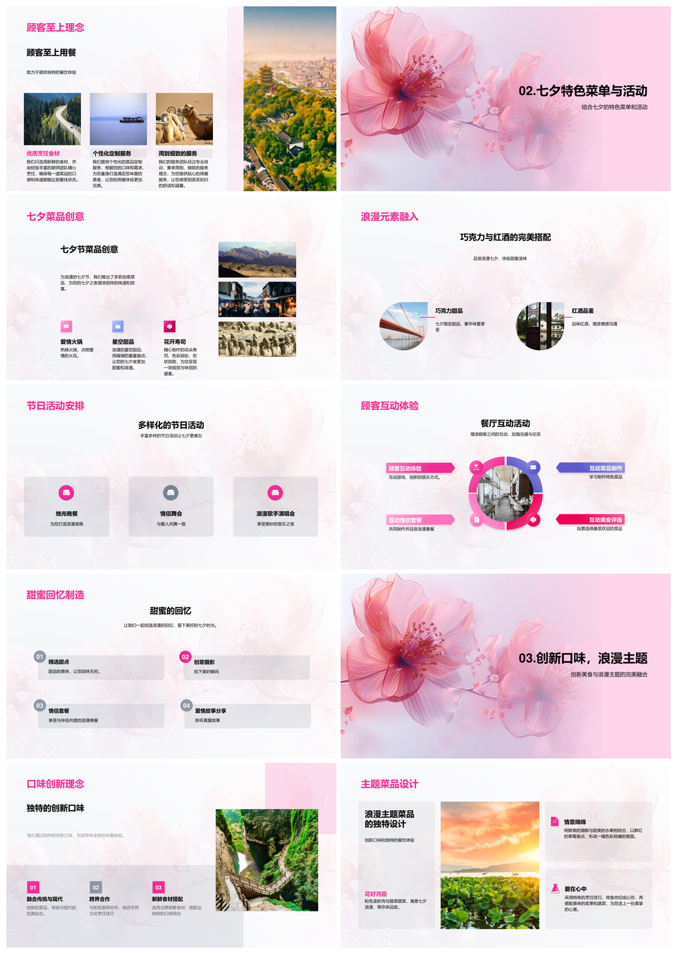 这是一张七夕餐厅特色菜单营销活动服务策划报告PPT模板,包含七夕、餐厅、特色菜单、营销活动、服务策划、报告等主题内容,也可用作七夕餐厅特色菜单、餐厅特色菜单营销、特色菜单营销活动、菜单营销活动服务、营销活动服务策划、活动服务策划报告、七夕餐厅特色、餐厅特色菜单、特色菜单营销、菜单营销活动、营销活动服务、活动服务策划、服务策划报告、七夕餐厅、策划报告等PPT场景使用。 风云办公提供的七夕餐厅特色菜单营销活动服务策划报告PPT模板,下载格式为pptx,一共33页,作品中文字及图均可以修改和编辑,图片更改请在作品中右键图片并更换,文字修改请直接点击文字进行修改。