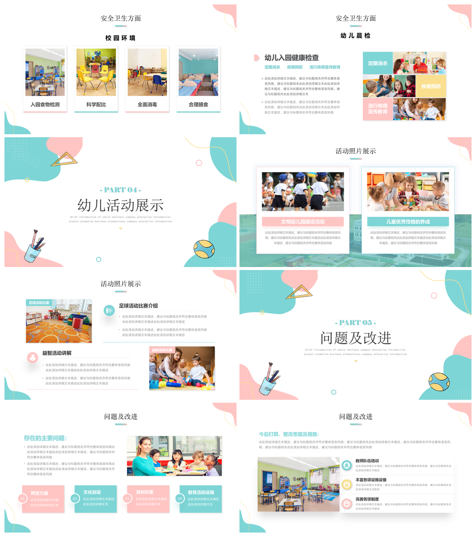 幼儿园2022简约多彩年度工作总结汇报PPT模板