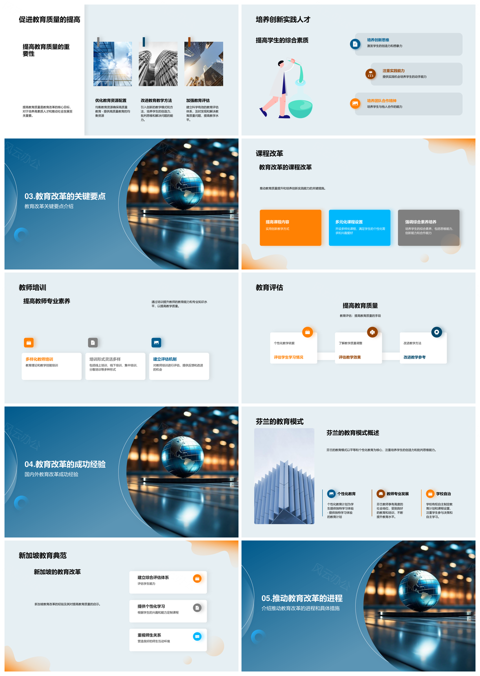 这是一张教育改革人才培养质量提升芬新课程师资评估模式PPT模板,包含教育改革、人才培养、质量提升、新课程、师资评估模式等主题内容,也可用作教育改革人才培养质量提升芬新课程、人才培养质量提升芬新课程师资评估、质量提升芬新课程师资评估评估模式、芬新课程师资评估评估模式、教育改革人才培养质量提升、人才培养质量提升芬新课程、质量提升芬新课程师资评估、芬新课程师资评估评估模式、教育改革人才培养、人才培养质量提升、质量提升芬新课程、芬新课程师资评估、师资评估评估模式、教育改革质量提升、人才培养芬新课程等PPT场景使用。 风云办公提供的教育改革人才培养质量提升芬新课程师资评估模式PPT模板,下载格式为pptx,一共24页,作品中文字及图均可以修改和编辑,图片更改请在作品中右键图片并更换,文字修改请直接点击文字进行修改。