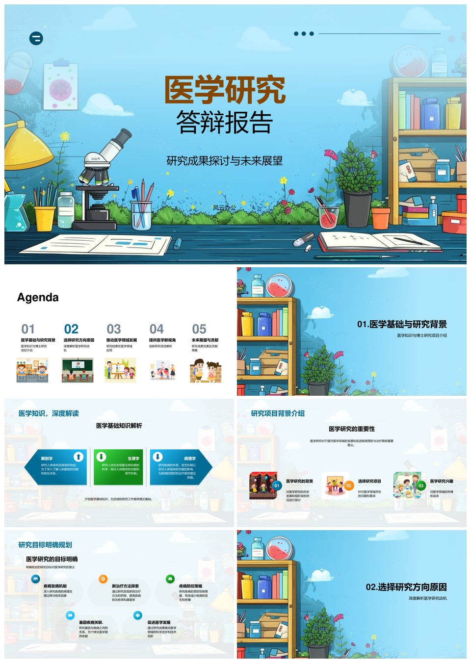 风云办公提供的医学研究答辩报告背景目标成果展望PPT模板,下载格式为pptx,一共23页,作品中文字及图均可以修改和编辑,图片更改请在作品中右键图片并更换,文字修改请直接点击文字进行修改。