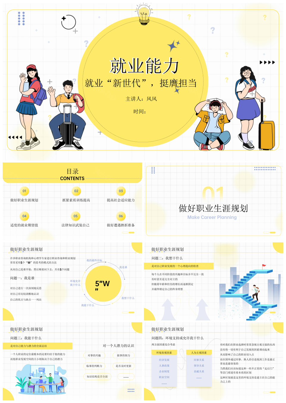 这是一张2025插画就业能力职业规划指导课件PPT模板,包含2025、插画、就业能力、职业规划、指导课件等主题内容,也可用作2025插画就业能力职业规划、插画就业能力职业规划、就业能力职业规划指导、职业规划指导课件、插画职业规划指导课件、插画就业能力职业、能力职业规划指导、插画就业能力、就业能力职业、能力职业规划、职业规划指导、规划指导课件、2025插画就业、插画职业规划、职业规划课件等PPT场景使用。 风云办公提供的2025插画就业能力职业规划指导课件PPT模板,下载格式为pptx,一共28页,作品中文字及图均可以修改和编辑,图片更改请在作品中右键图片并更换,文字修改请直接点击文字进行修改。