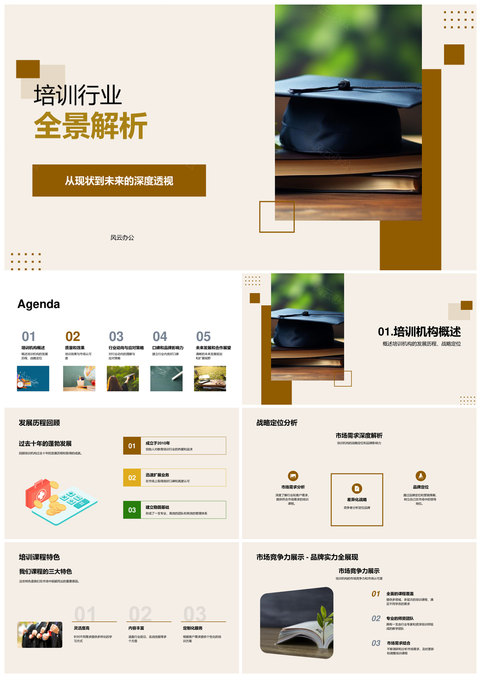 培训行业发展历程战略定位课程特色解析PPT模板推荐