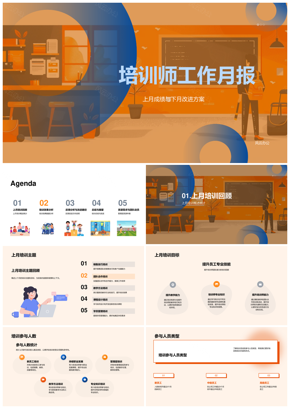 这是一张培训师月报上月成绩下月改进效果反馈分析PPT模板,包含培训师、月报、上月、成绩、下月、改进、效果、反馈、分析等主题内容,也可用作培训师月报上月成绩下月改进效果反馈分析、培训师月报上月成绩下月改进效果反馈、月报上月成绩下月改进效果反馈分析、培训师月报上月成绩下月改进、月报上月成绩下月改进效果反馈、上月成绩下月改进效果反馈分析、培训师月报上月成绩、月报上月成绩下月改进效果、成绩下月改进效果反馈分析、下月改进效果反馈分析、月报上月成绩下月改进、上月成绩下月改进效果反馈、培训师月报上月、上月成绩下月改进效果、成绩下月改进效果等PPT场景使用。 风云办公提供的培训师月报上月成绩下月改进效果反馈分析PPT模板,下载格式为pptx,一共24页,作品中文字及图均可以修改和编辑,图片更改请在作品中右键图片并更换,文字修改请直接点击文字进行修改。