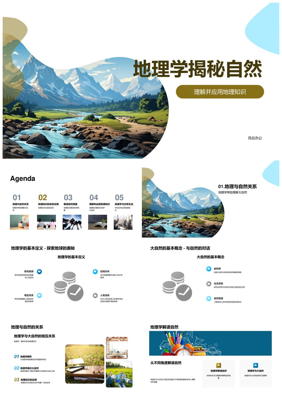 风云办公提供的地理学揭示自然规律助气候资源环保PPT模板,下载格式为pptx,一共24页,作品中文字及图均可以修改和编辑,图片更改请在作品中右键图片并更换,文字修改请直接点击文字进行修改。