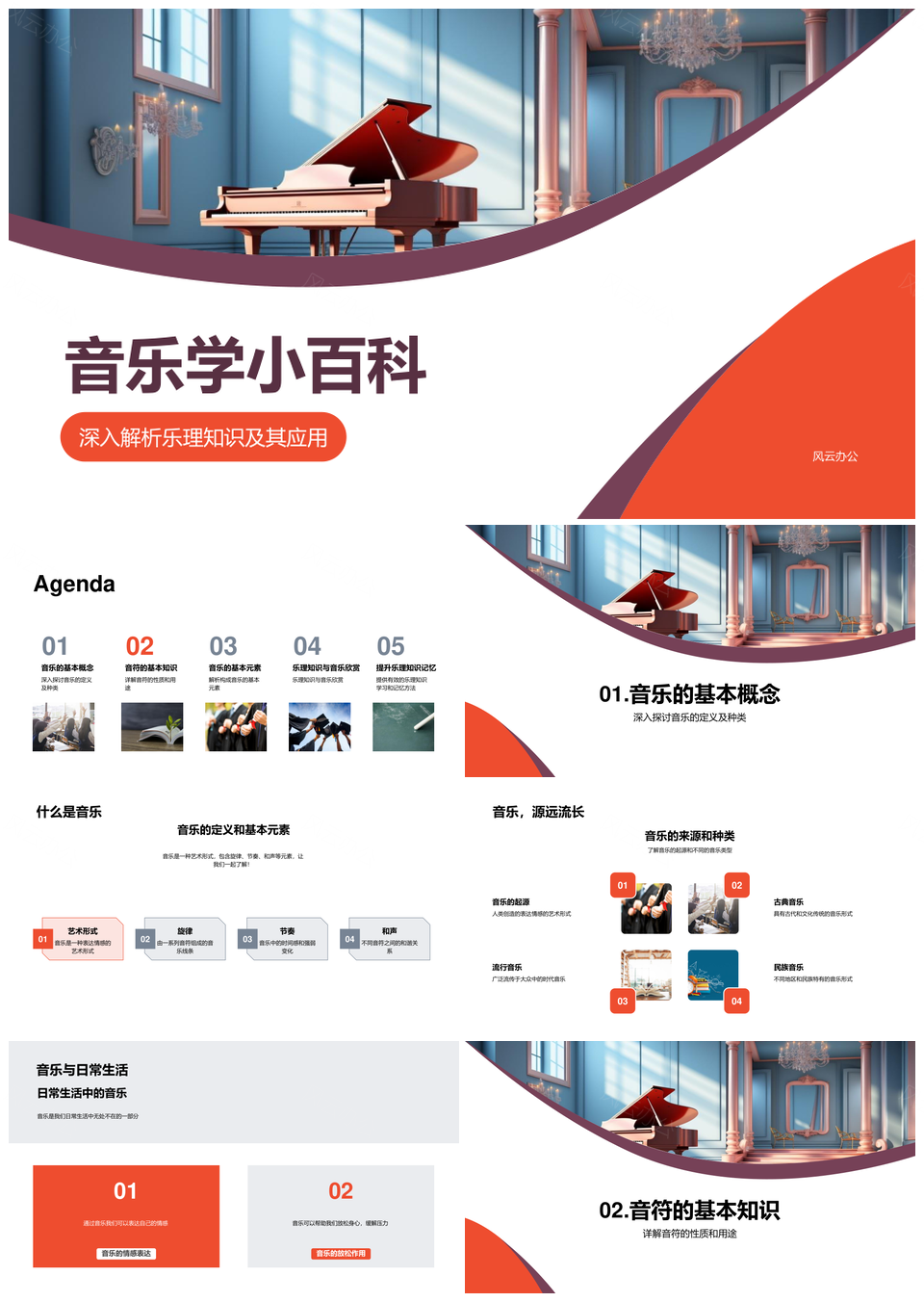 这是一张音乐学百科乐理起源种类音符旋律节奏和声PPT模板,包含音乐学、百科、乐理、起源、种类、音符、旋律、节奏、和声等主题内容,也可用作音乐学百科乐理起源、乐理起源种类音符、种类音符旋律节奏、音符旋律节奏和声、音乐学乐理旋律节奏、乐理旋律节奏和声、百科乐理起源种类、乐理起源音符旋律、音乐学百科乐理种类、百科乐理种类音符、音乐学乐理种类音符、乐理种类音符旋律、音符旋律节奏和声、音乐学乐理节奏和声、音乐学百科旋律节奏等PPT场景使用。 风云办公提供的音乐学百科乐理起源种类音符旋律节奏和声PPT模板,下载格式为pptx,一共23页,作品中文字及图均可以修改和编辑,图片更改请在作品中右键图片并更换,文字修改请直接点击文字进行修改。