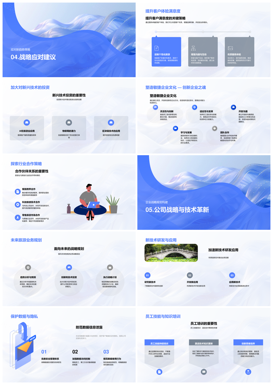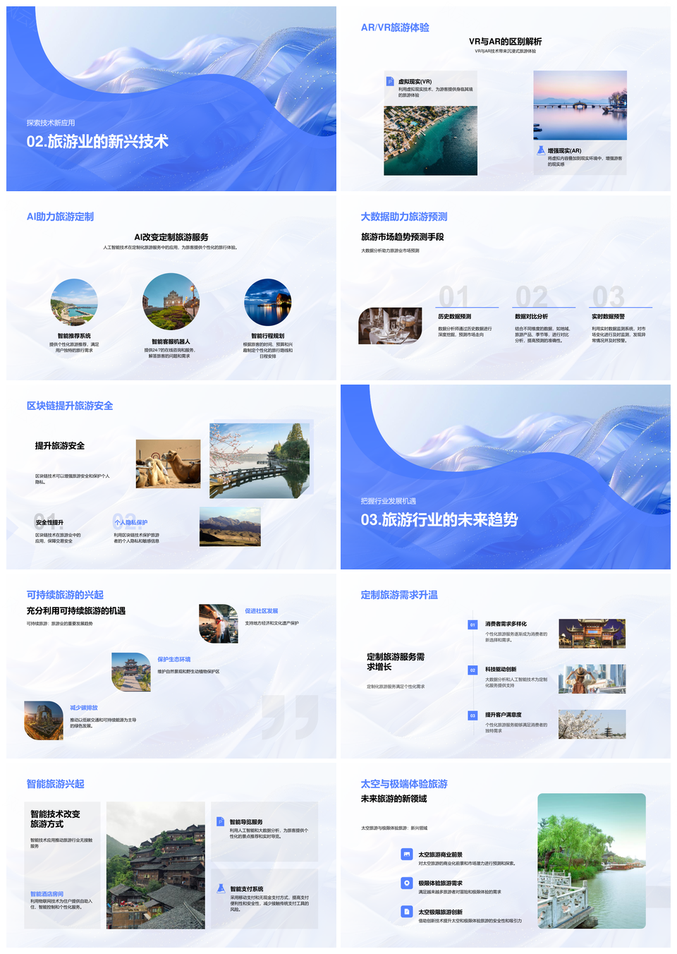 这是一张旅游业年终科技转型AI定制可持续旅游报告PPT模板,包含旅游业、年终、科技、转型、AI、定制、可持续、旅游、报告等主题内容,也可用作旅游业年终科技转型、科技转型AI定制可持续、转型AI定制可持续旅游、AI定制可持续旅游报告、旅游业年终科技转型AI、年终科技转型AI定制、科技转型AI定制可持续、转型AI定制可持续旅游、AI定制可持续旅游报告、旅游业年终科技、年终科技转型、科技转型AI、转型AI定制、AI定制可持续、定制可持续旅游等PPT场景使用。 风云办公提供的旅游业年终科技转型AI定制可持续旅游报告PPT模板,下载格式为pptx,一共28页,作品中文字及图均可以修改和编辑,图片更改请在作品中右键图片并更换,文字修改请直接点击文字进行修改。