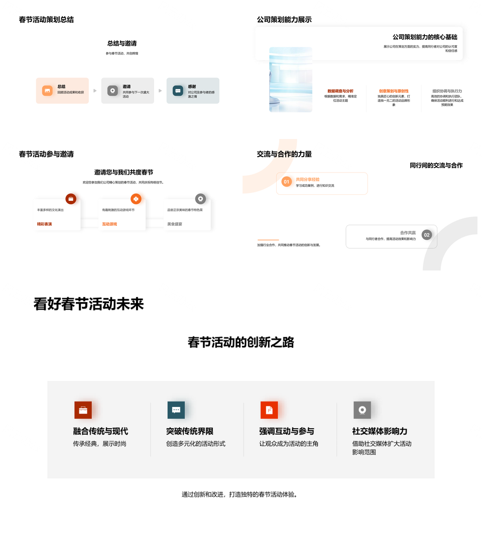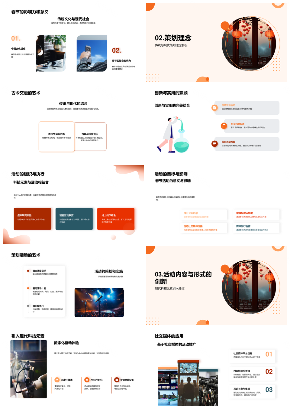 这是一张传媒企业春节活动策划创新实践社交媒体控预算灯笼效果评估PPT模板,包含传媒企业、春节活动、策划、创新、实践、社交媒体、控预算、灯笼、效果评估等主题内容,也可用作传媒企业春节活动策划创新实践、春节活动策划创新实践社交媒体、春节活动控预算灯笼效果评估、策划创新实践控预算效果评估、社交媒体控预算灯笼效果评估、传媒企业社交媒体控预算、传媒企业春节活动策划、春节活动策划创新实践、策划创新实践社交媒体、创新实践控预算灯笼、控预算灯笼效果评估、社交媒体控预算、传媒企业策划、春节活动灯笼、创新实践效果评估等PPT场景使用。 风云办公提供的传媒企业春节活动策划创新实践社交媒体控预算灯笼效果评估PPT模板,下载格式为pptx,一共33页,作品中文字及图均可以修改和编辑,图片更改请在作品中右键图片并更换,文字修改请直接点击文字进行修改。