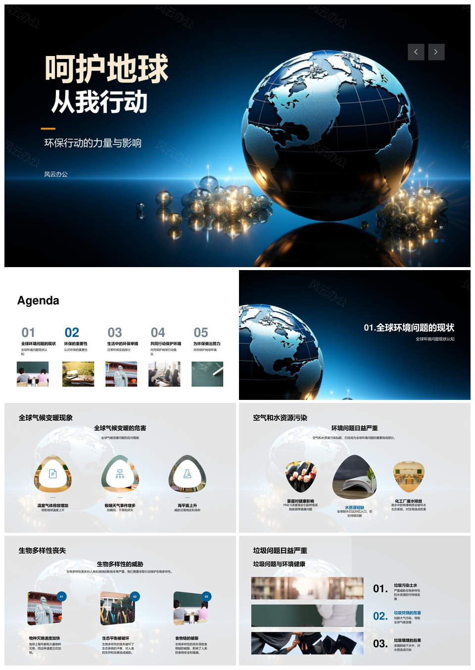 这是一张守护地球践行环保共护生态未来PPT模板,包含守护地球、践行、环保、共护、生态、未来等主题内容,也可用作守护地球践行环保、环保共护生态未来、践行环保共护、环保共护生态、共护生态未来、守护地球、践行环保、共护生态、生态未来、环保共护、守护环保、共护未来、环保生态、地球环保、环保未来等PPT场景使用。 风云办公提供的守护地球践行环保共护生态未来PPT模板,下载格式为pptx,一共28页,作品中文字及图均可以修改和编辑,图片更改请在作品中右键图片并更换,文字修改请直接点击文字进行修改。