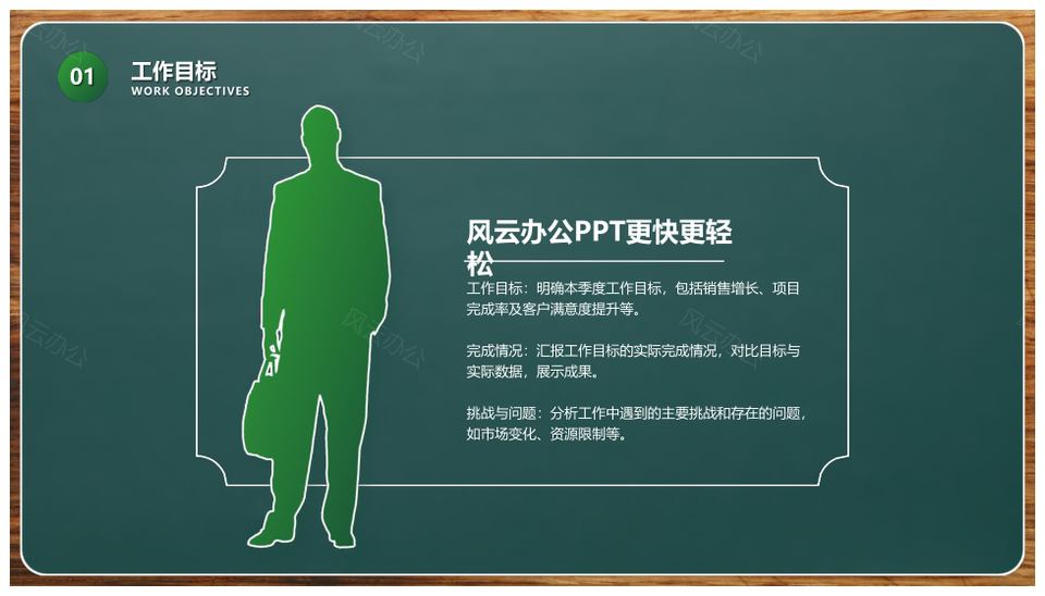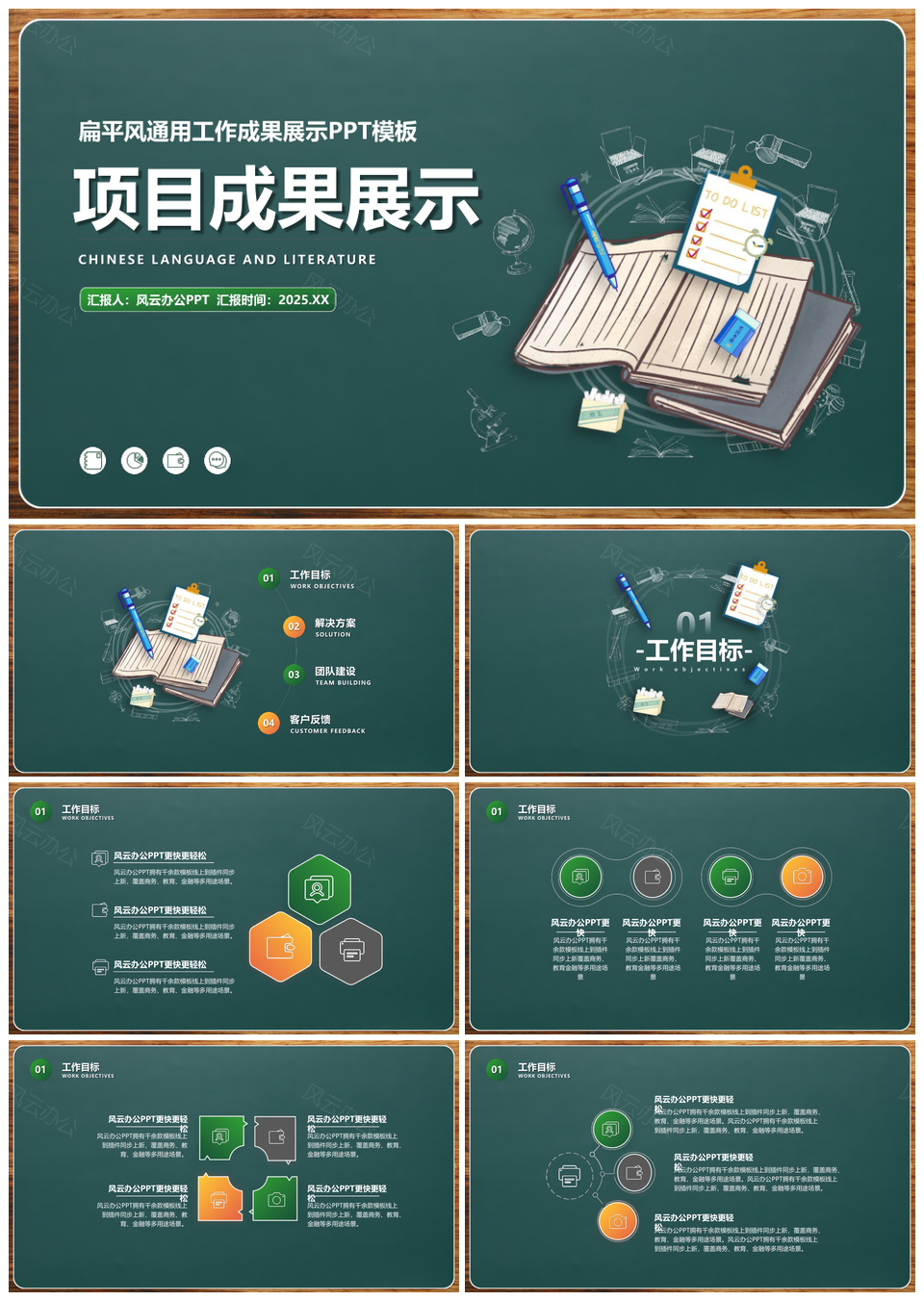 风云办公提供的2025商务通用工作成果黑板展秀PPT模板,下载格式为pptx,一共19页,作品中文字及图均可以修改和编辑,图片更改请在作品中右键图片并更换,文字修改请直接点击文字进行修改。