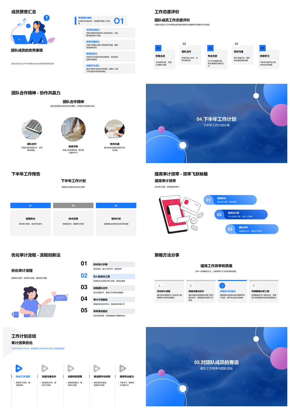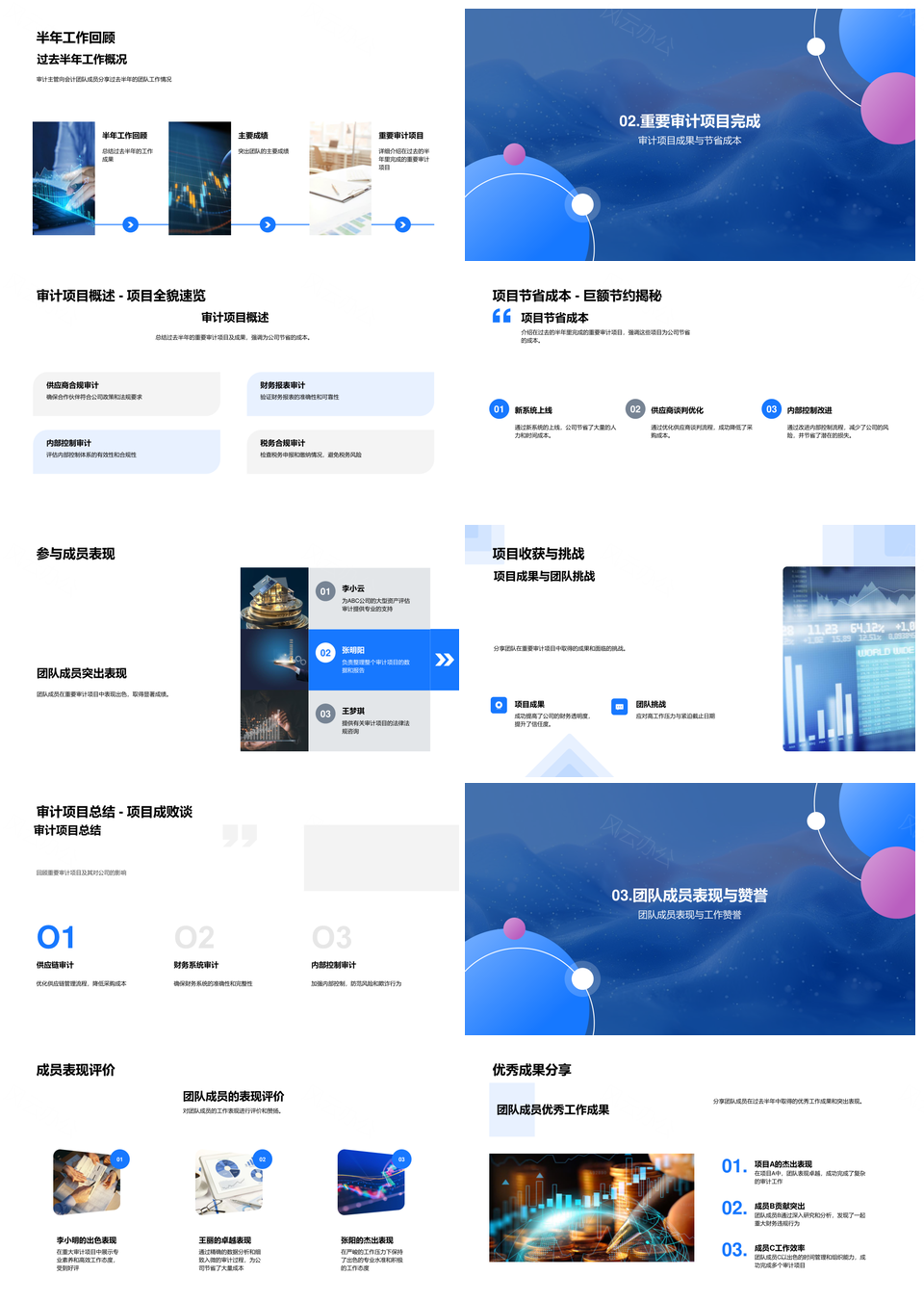 审计团队半年工作总结成果项目节省成本效率提升计划PPT模板推荐