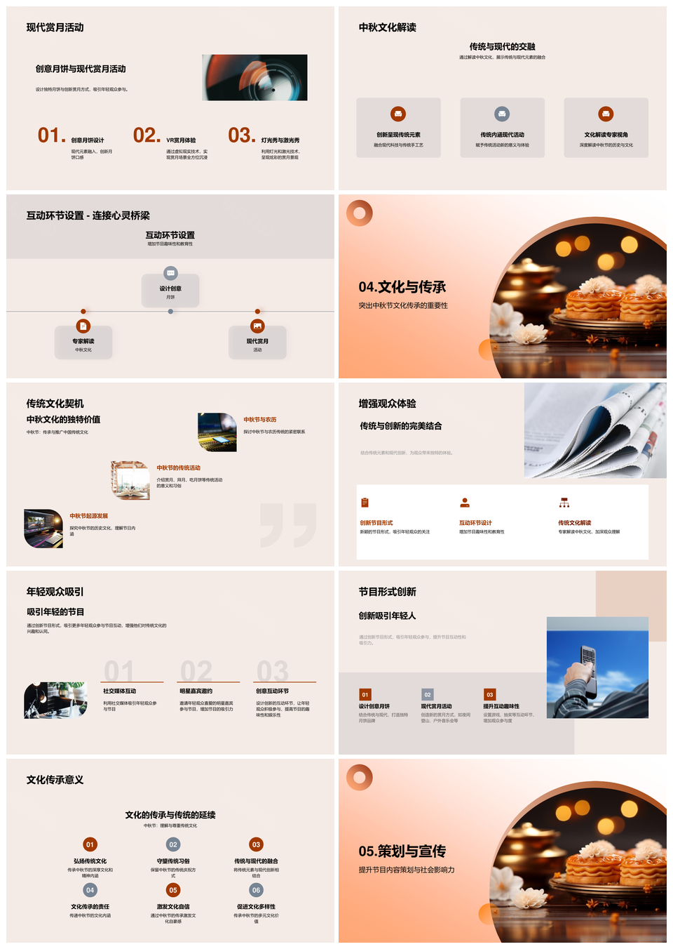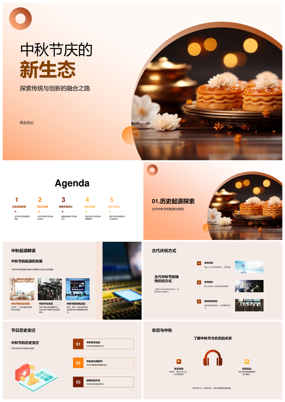 风云办公提供的中秋传统焕新节目赏月拜月品月饼PPT模板,下载格式为pptx,一共33页,作品中文字及图均可以修改和编辑,图片更改请在作品中右键图片并更换,文字修改请直接点击文字进行修改。