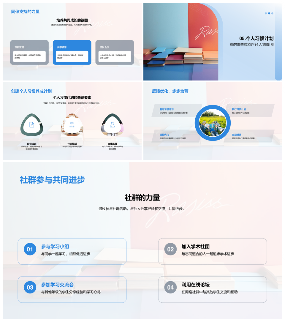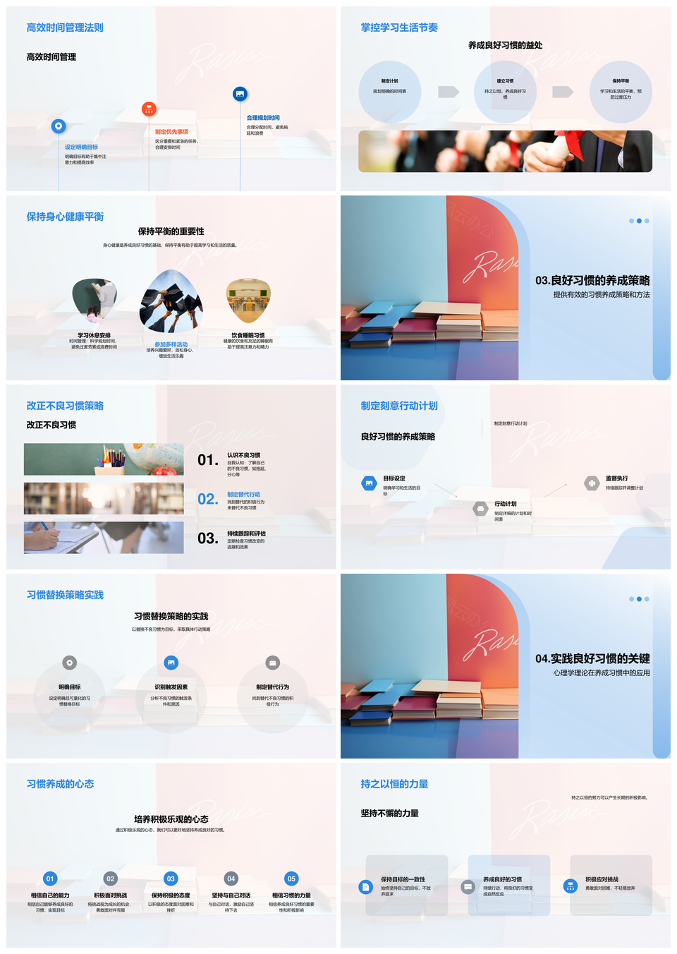 风云办公提供的高二学生高效习惯助力学习身心健康PPT模板,下载格式为pptx,一共23页,作品中文字及图均可以修改和编辑,图片更改请在作品中右键图片并更换,文字修改请直接点击文字进行修改。