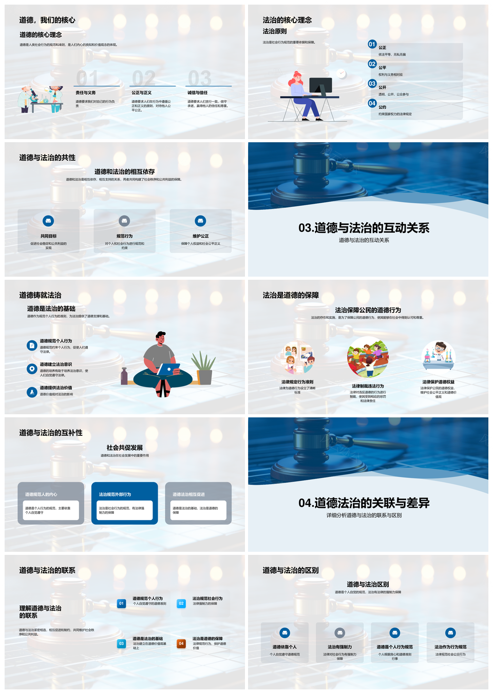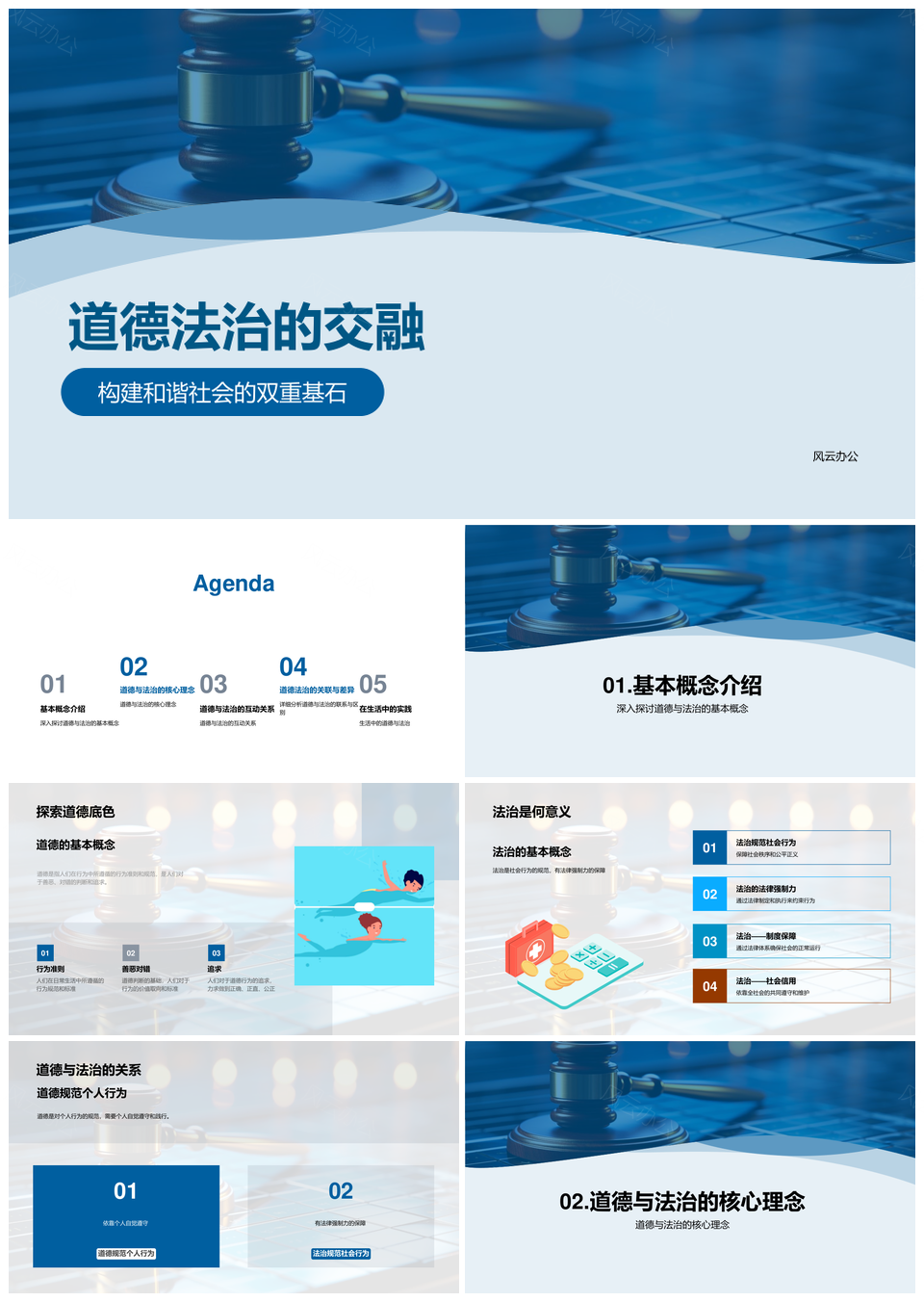 风云办公提供的道德法治共筑和谐社会基石PPT模板,下载格式为pptx,一共23页,作品中文字及图均可以修改和编辑,图片更改请在作品中右键图片并更换,文字修改请直接点击文字进行修改。