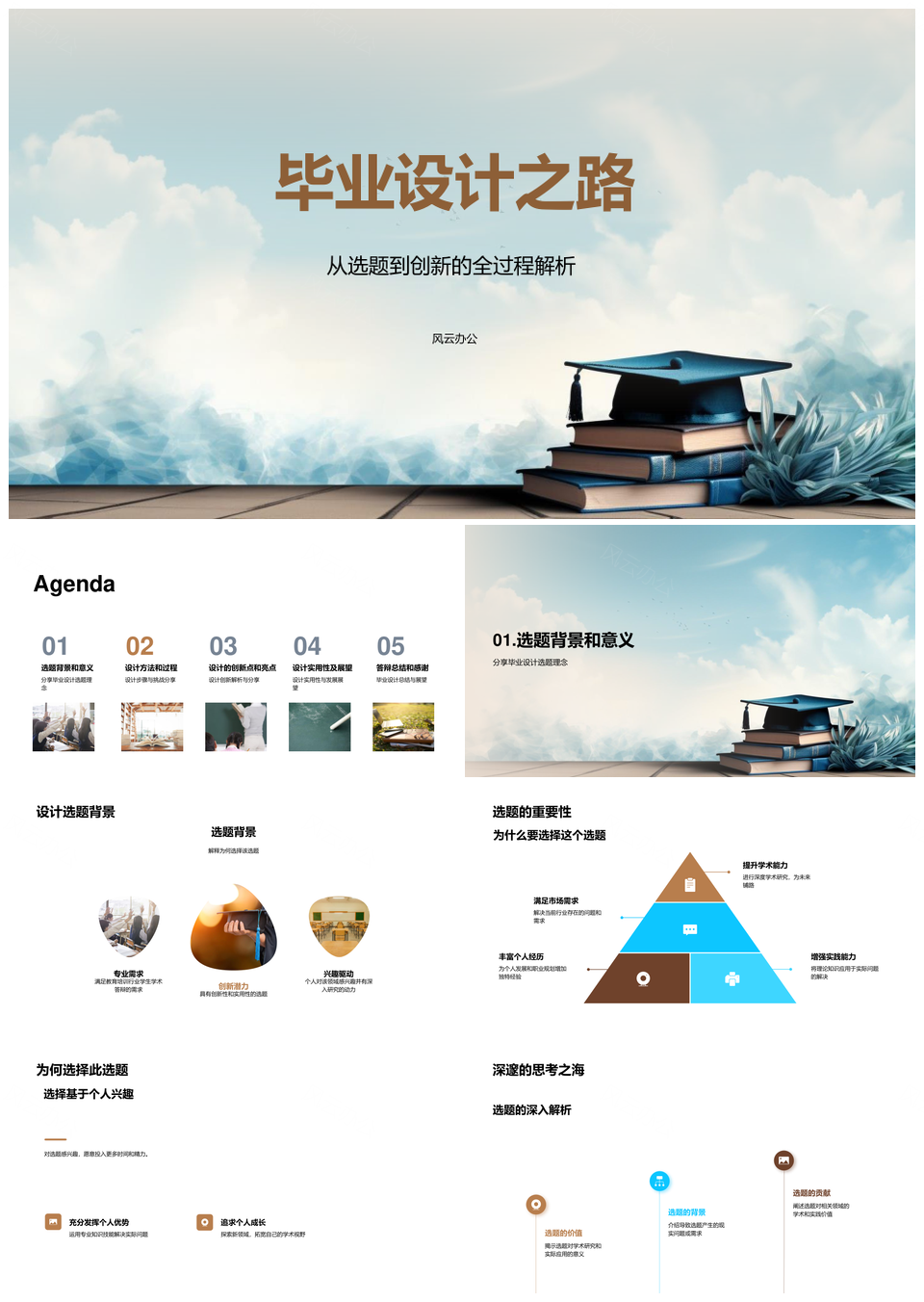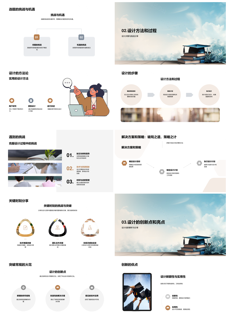 风云办公提供的毕业设计创新选题挑战与解决方案PPT模板,下载格式为pptx,一共33页,作品中文字及图均可以修改和编辑,图片更改请在作品中右键图片并更换,文字修改请直接点击文字进行修改。