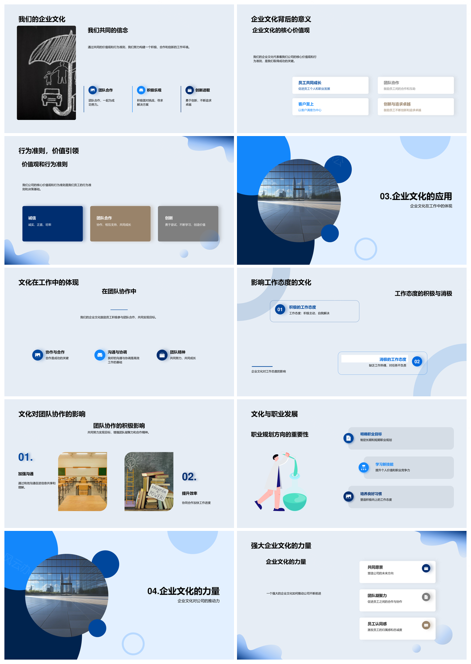 这是一张构建企业文化实践路径强化员工价值观协作职业发展PPT模板,包含企业文化、实践路径、强化、员工、价值观、协作、职业发展等主题内容,也可用作构建企业文化实践路径、企业文化实践路径强化、强化员工价值观协作、员工价值观协作职业发展、构建企业文化实践、企业文化实践路径、实践路径强化员工、路径强化员工价值观、强化员工价值观协作职业、价值观协作职业发展、构建企业文化、企业文化实践、实践路径强化、路径强化员工、员工价值观协作等PPT场景使用。 风云办公提供的构建企业文化实践路径强化员工价值观协作职业发展PPT模板,下载格式为pptx,一共24页,作品中文字及图均可以修改和编辑,图片更改请在作品中右键图片并更换,文字修改请直接点击文字进行修改。