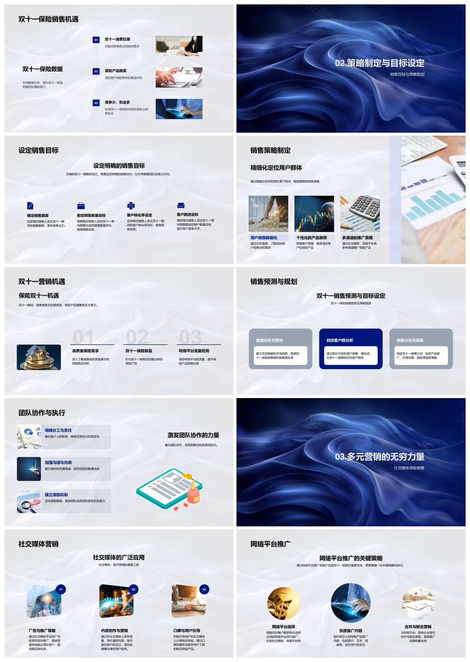 这是一张2025双十一保险销售策略团队目标客户社交媒体PPT模板,包含2025、双十一、保险、销售策略、团队、目标、客户、社交媒体等主题内容,也可用作2025双十一保险销售、双十一保险销售策略、保险销售策略团队、销售策略团队目标、策略团队目标客户、团队目标客户社交媒体、2025双十一保险、双十一保险销售、保险销售策略、销售策略团队、策略团队目标、团队目标客户、目标客户社交媒体、2025双十一、双十一保险、保险销售等PPT场景使用。 风云办公提供的2025双十一保险销售策略团队目标客户社交媒体PPT模板,下载格式为pptx,一共33页,作品中文字及图均可以修改和编辑,图片更改请在作品中右键图片并更换,文字修改请直接点击文字进行修改。