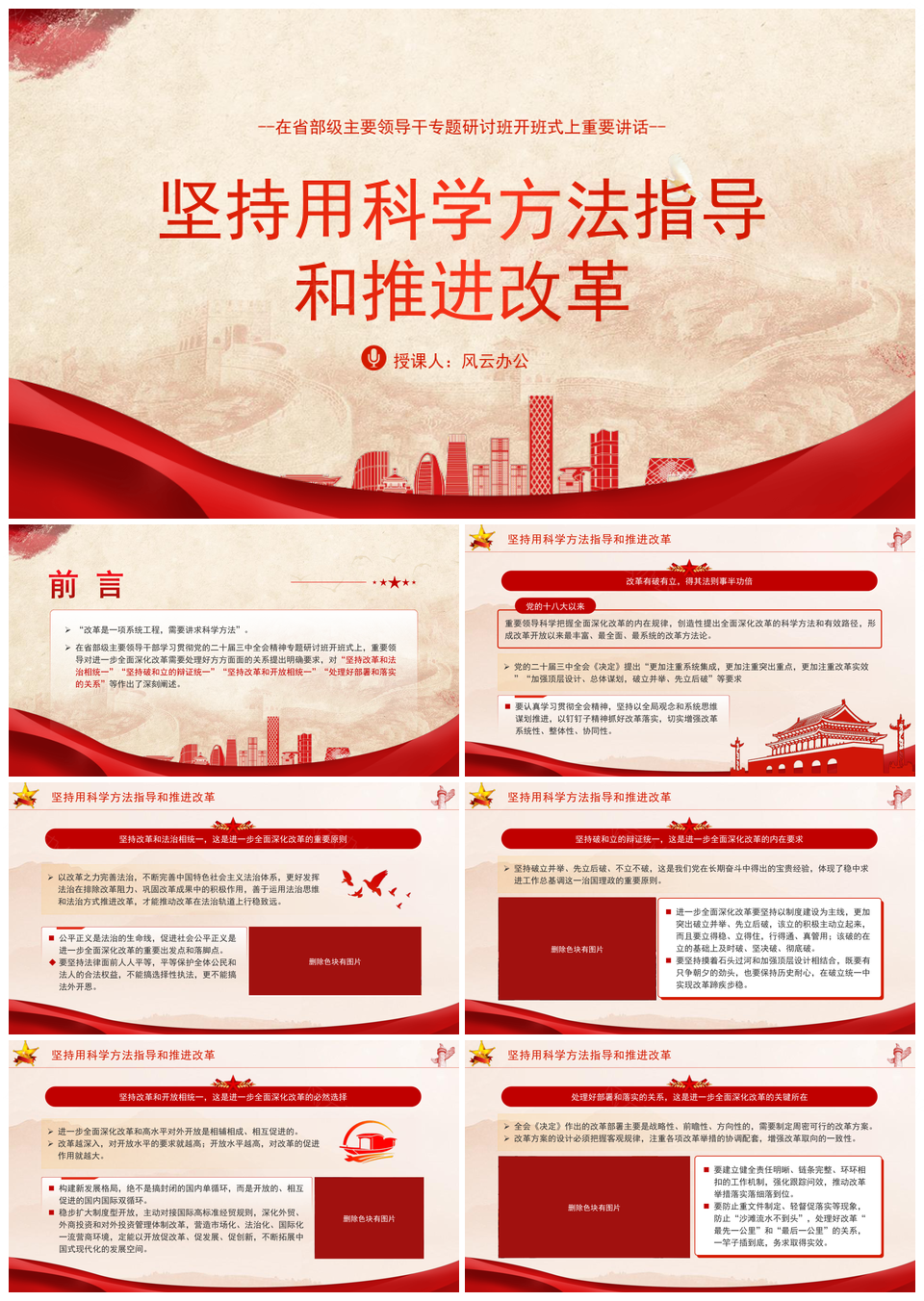 这是一张省部级专题研讨班开班式重要讲话专题党课学习PPT模板,包含省部级、专题、研讨班、开班式、重要、讲话、党课、学习等主题内容,也可用作省部级专题研讨班开班式、专题研讨班开班式重要讲话、研讨班开班式重要讲话专题党课、开班式重要讲话专题党课学习、省部级专题研讨班、专题研讨班开班式、研讨班开班式重要讲话、开班式重要讲话专题党课、重要讲话专题党课学习、省部级专题、专题研讨班、研讨班开班式、开班式重要讲话、重要讲话专题党课、专题党课学习等PPT场景使用。 风云办公提供的省部级专题研讨班开班式重要讲话专题党课学习PPT模板,下载格式为pptx,一共9页,作品中文字及图均可以修改和编辑,图片更改请在作品中右键图片并更换,文字修改请直接点击文字进行修改。