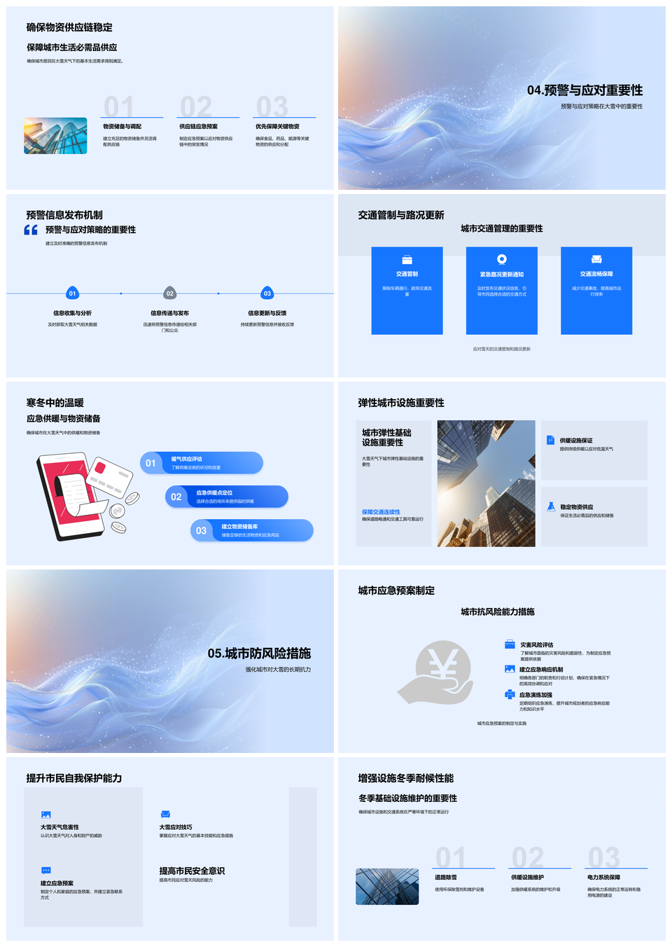这是一张城市大雪应急管理交通物资供暖保障策略PPT模板,包含大雪、应急管理、交通、物资、供暖、保障、策略等主题内容,也可用作城市大雪应急管理交通、城市大雪应急管理物资、城市大雪应急管理供暖、城市大雪应急管理保障策略、大雪应急管理交通物资、应急管理交通物资供暖、交通物资供暖保障策略、应急管理交通供暖保障策略、应急管理交通物资、应急管理交通供暖、交通物资供暖、应急管理物资供暖、物资供暖保障策略、城市大雪、应急管理交通等PPT场景使用。 风云办公提供的城市大雪应急管理交通物资供暖保障策略PPT模板,下载格式为pptx,一共29页,作品中文字及图均可以修改和编辑,图片更改请在作品中右键图片并更换,文字修改请直接点击文字进行修改。