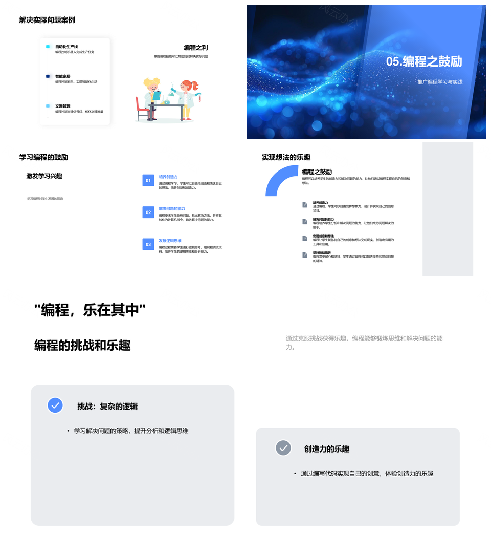 这是一张2025四年级Scratch编程基础教学培养思维实践PPT模板,包含2025、四年级、Scratch编程、基础教学、培养、思维、实践等主题内容,也可用作2025四年级Scratch编程基础教学、四年级Scratch编程基础教学、Scratch编程基础教学培养、编程基础教学培养思维、基础教学培养思维实践、四年级编程基础教学培养、Scratch编程教学培养思维、编程教学培养思维实践、2025四年级Scratch教学、四年级基础教学培养思维、Scratch基础教学培养实践、编程培养思维实践、2025Scratch编程教学、四年级教学培养实践、Scratch编程基础实践等PPT场景使用。 风云办公提供的2025四年级Scratch编程基础教学培养思维实践PPT模板,下载格式为pptx,一共23页,作品中文字及图均可以修改和编辑,图片更改请在作品中右键图片并更换,文字修改请直接点击文字进行修改。