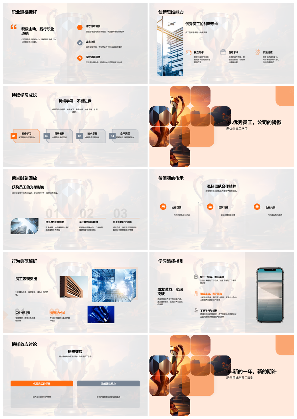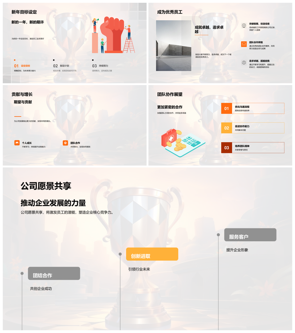 优秀员工激励政策年会奖杯表彰团队协作PPT模板