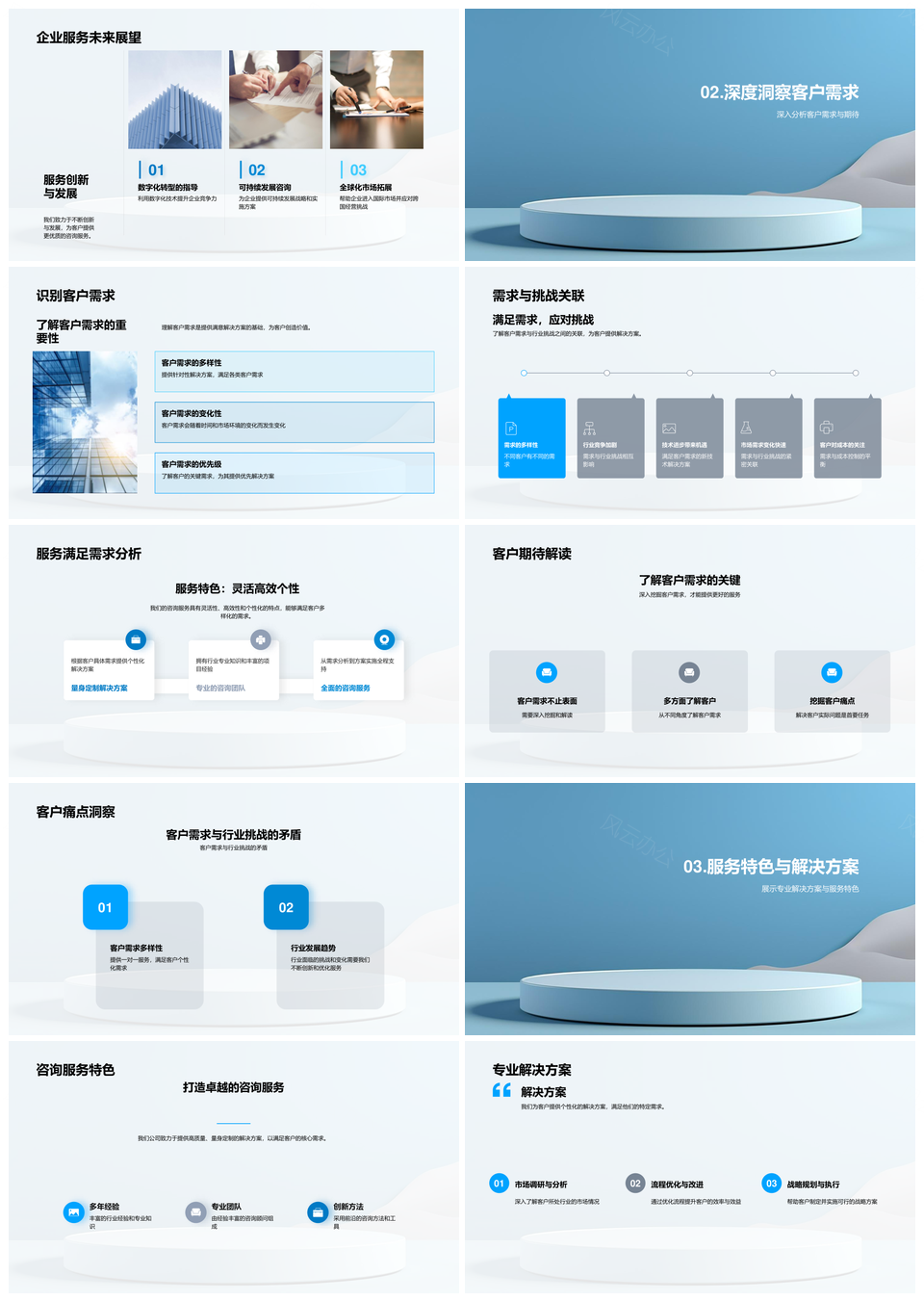 这是一张咨询服务应对行业挑战满足客户需求特色方案PPT模板,包含咨询服务、应对、行业挑战、满足、客户需求、特色方案等主题内容,也可用作应对行业挑战满足客户需求、应对行业挑战满足、行业挑战满足客户需求、满足客户需求特色方案、咨询服务应对行业挑战、应对行业挑战、满足客户需求、客户需求特色方案、行业挑战客户需求、应对客户需求、行业挑战特色方案、咨询服务特色方案、咨询服务应对、咨询服务行业挑战、行业挑战满足等PPT场景使用。 风云办公提供的咨询服务应对行业挑战满足客户需求特色方案PPT模板,下载格式为pptx,一共33页,作品中文字及图均可以修改和编辑,图片更改请在作品中右键图片并更换,文字修改请直接点击文字进行修改。