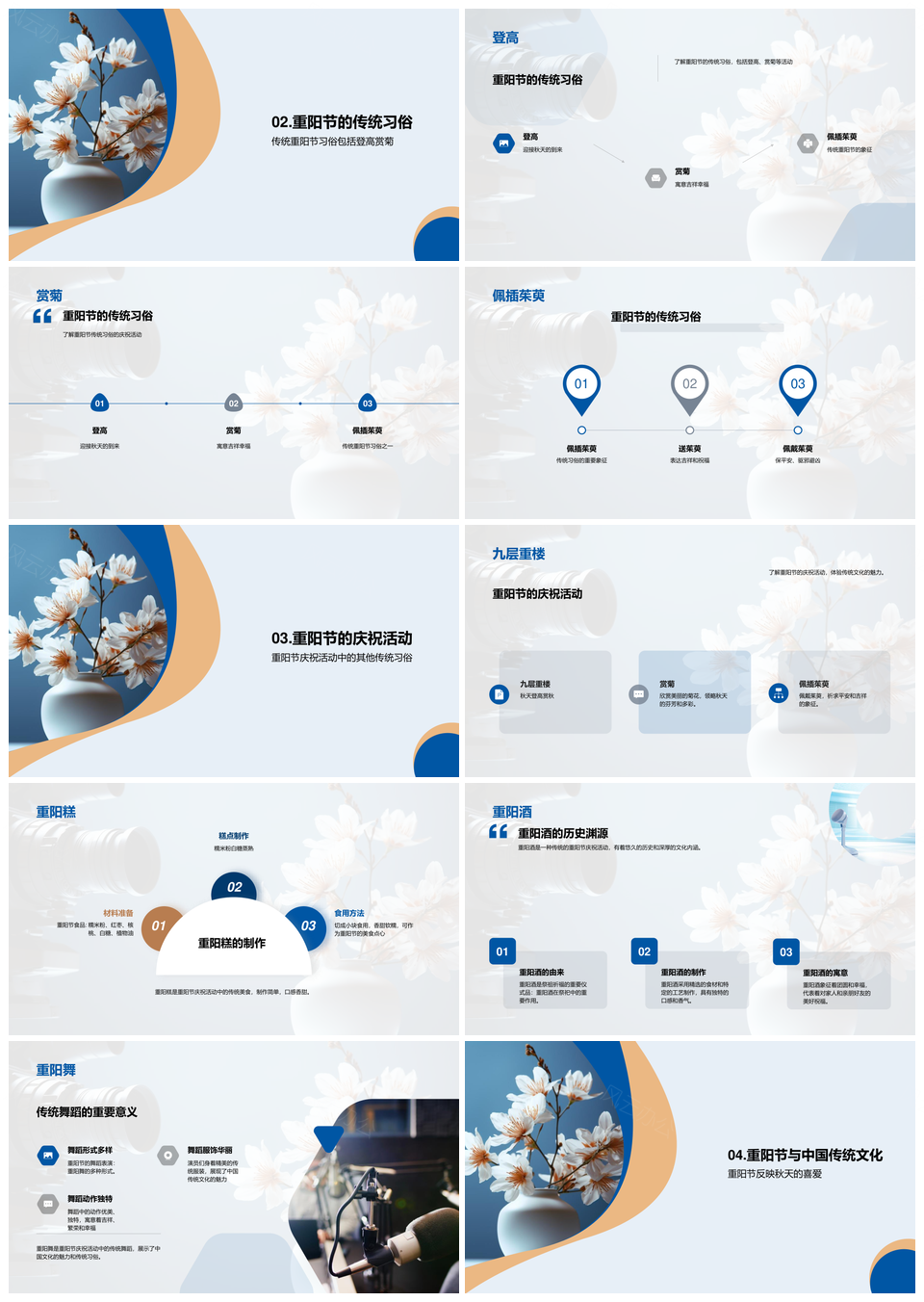 2025重阳节传统创新起源庆祝习俗赏菊糕酒PPT模板