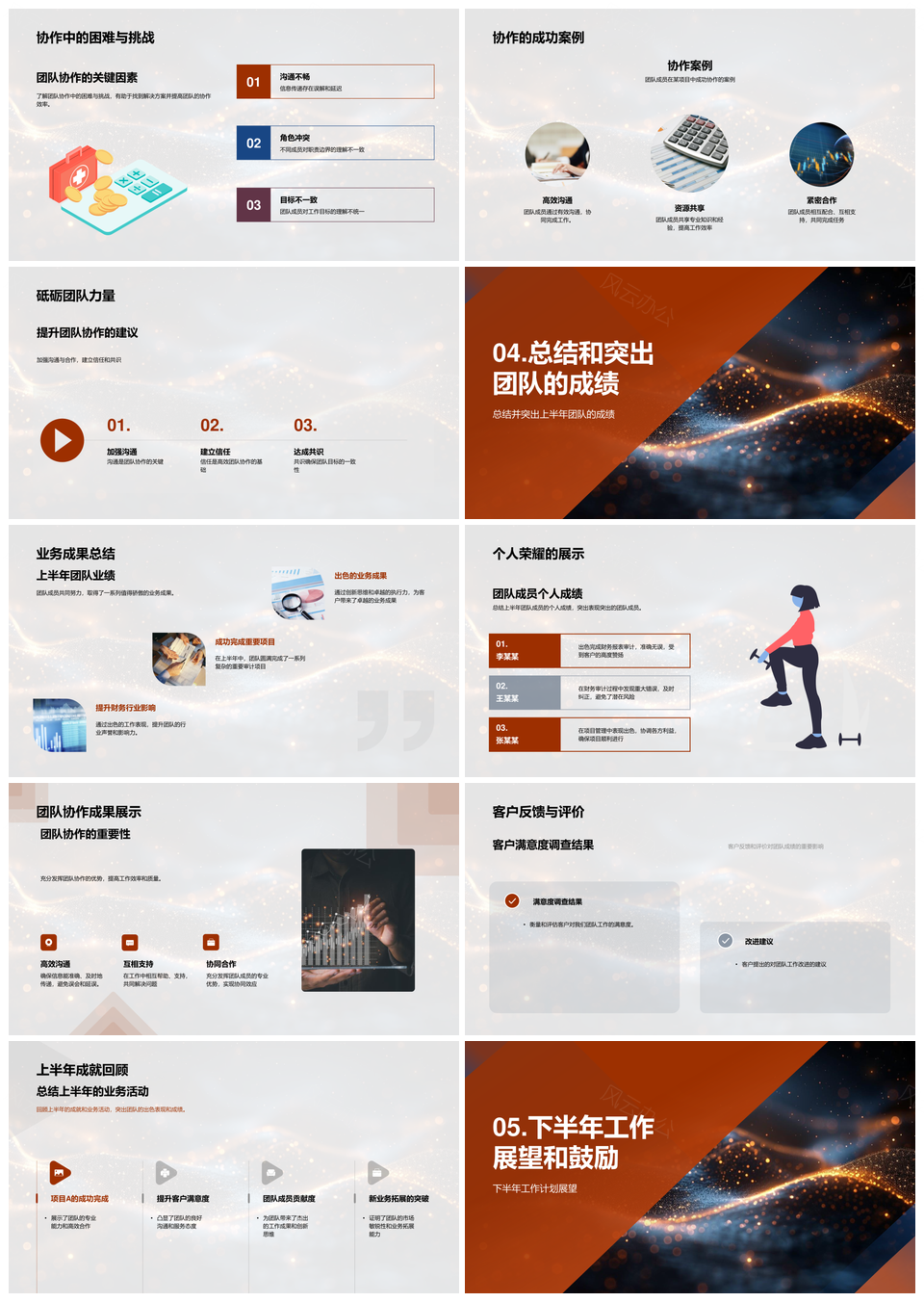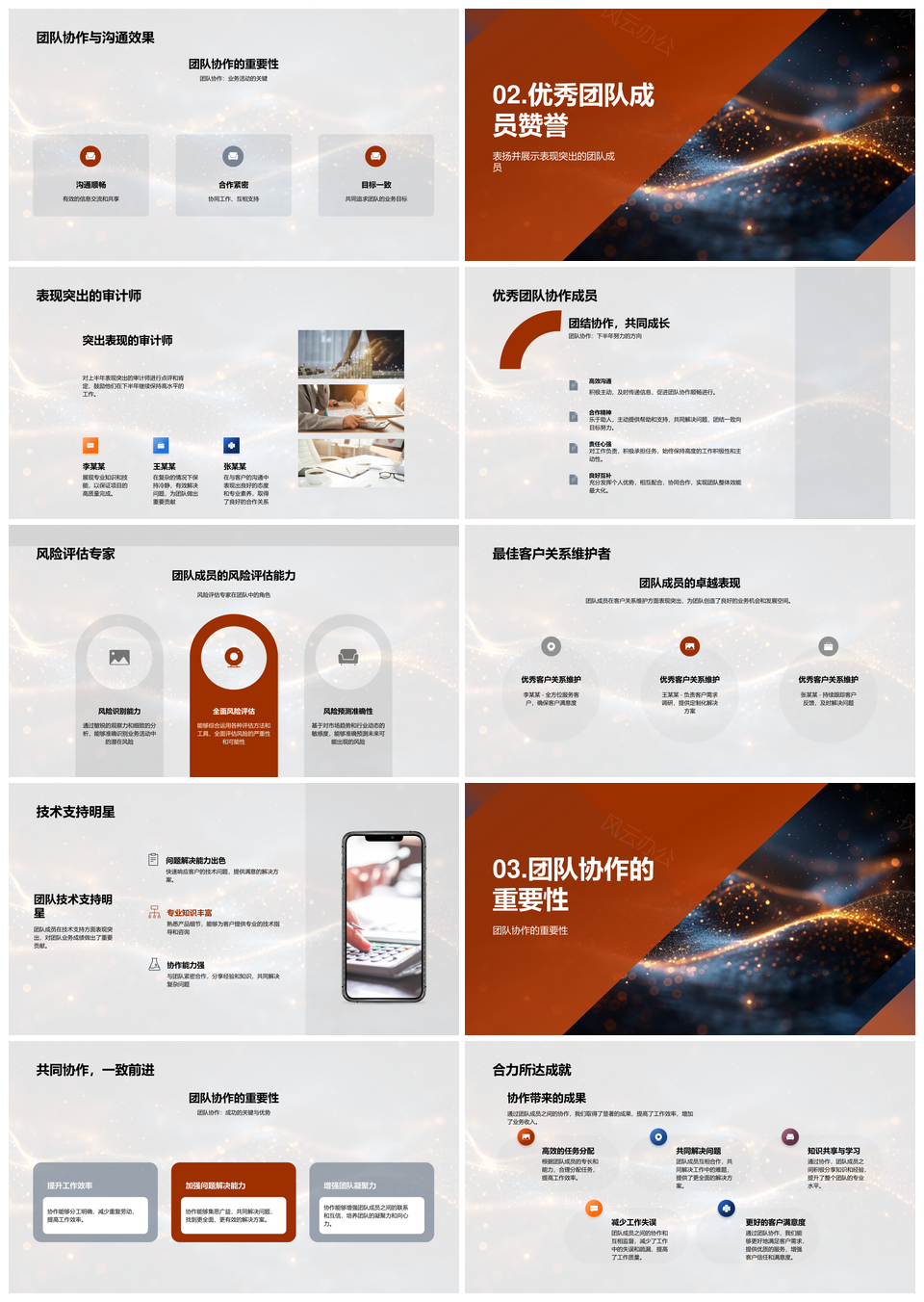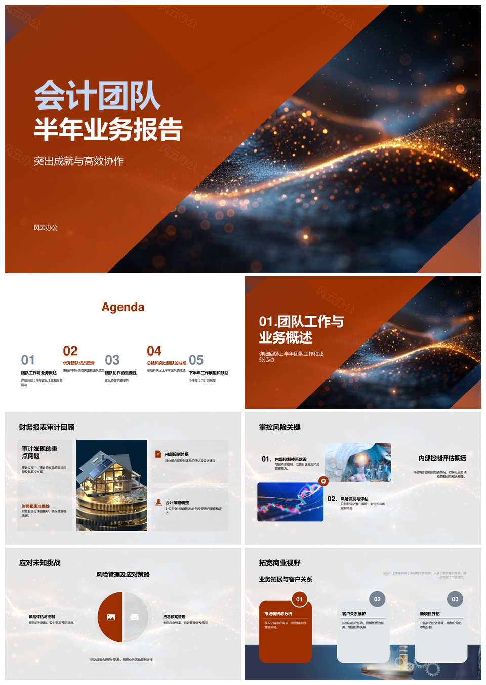 会计团队半年业务成就协作审计风控拓展报告PPT模板推荐