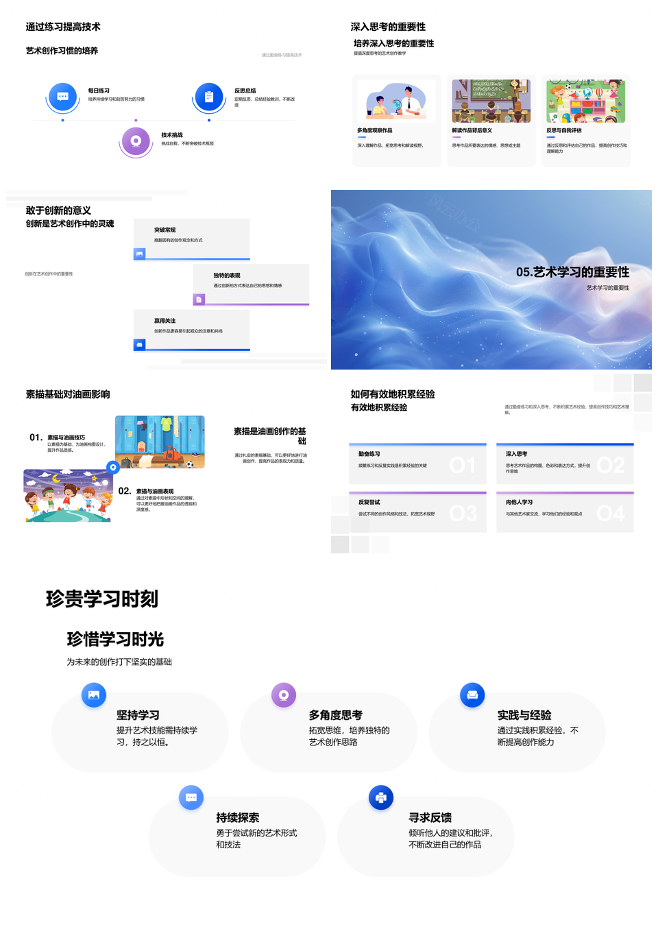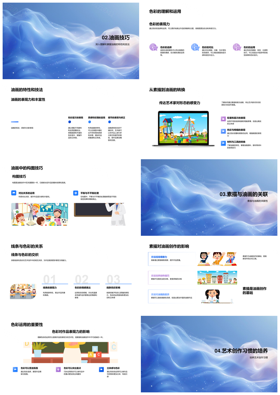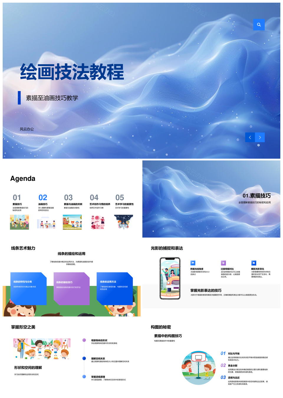 绘画技法素描油画构图色彩光影创作教程PPT模板推荐