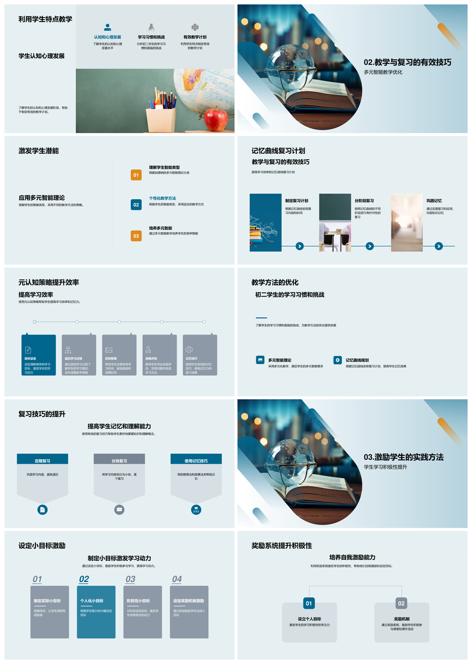 这是一张初二多元智能记忆曲线学习策略优化提升PPT模板,包含初二、多元智能、记忆曲线、学习策略、优化提升等主题内容,也可用作初二多元智能记忆曲线、多元智能记忆曲线学习、智能记忆曲线学习策略、记忆曲线学习策略优化、曲线学习策略优化提升、初二多元智能记忆、多元智能记忆曲线学习、智能记忆曲线学习策略优化、记忆曲线学习策略优化提升、初二多元智能、多元智能记忆曲线、智能记忆曲线学习、记忆曲线学习策略、学习策略优化提升、策略优化提升等PPT场景使用。 风云办公提供的初二多元智能记忆曲线学习策略优化提升PPT模板,下载格式为pptx,一共33页,作品中文字及图均可以修改和编辑,图片更改请在作品中右键图片并更换,文字修改请直接点击文字进行修改。