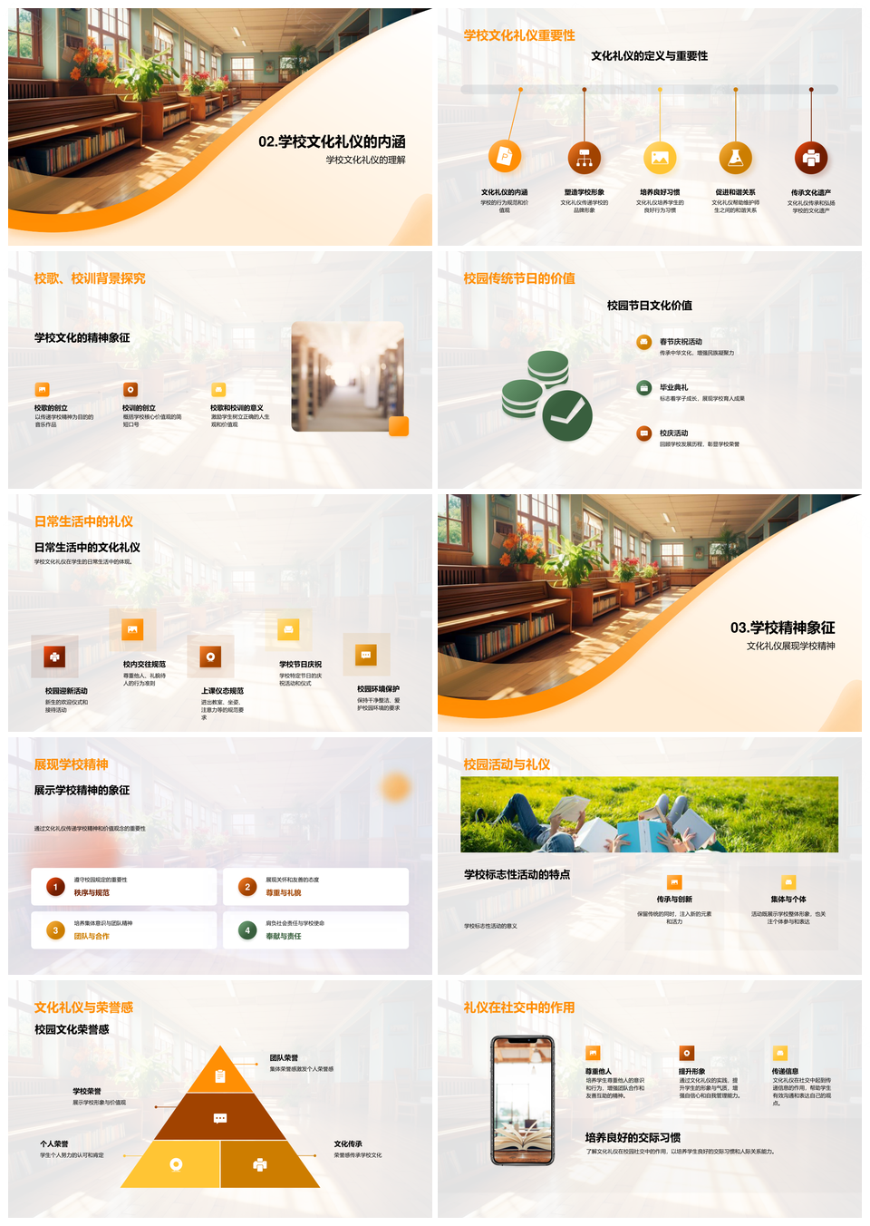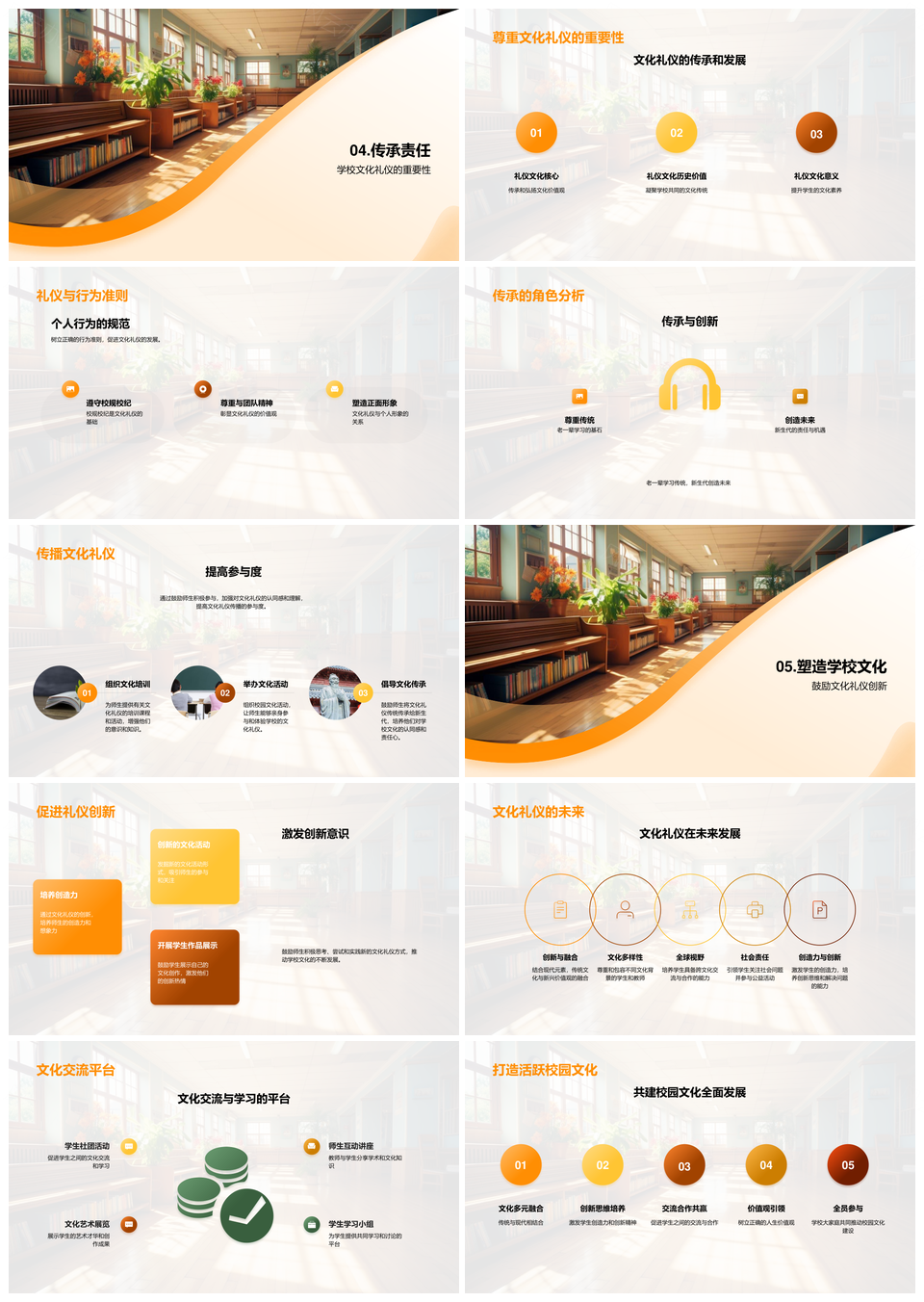 这是一张校园文化礼仪校史校训建筑精神传承PPT模板,包含校园文化、礼仪、校史、校训、建筑、精神、传承等主题内容,也可用作校园文化礼仪校史、文化礼仪校史校训、礼仪校史校训建筑、校史校训建筑精神、校训建筑精神传承、校园文化礼仪校训、文化礼仪校史建筑、礼仪校训建筑精神、校史建筑精神传承、校园校史校训传承、文化校训建筑精神、礼仪建筑精神传承、校史精神传承、校园校训建筑、文化建筑精神等PPT场景使用。