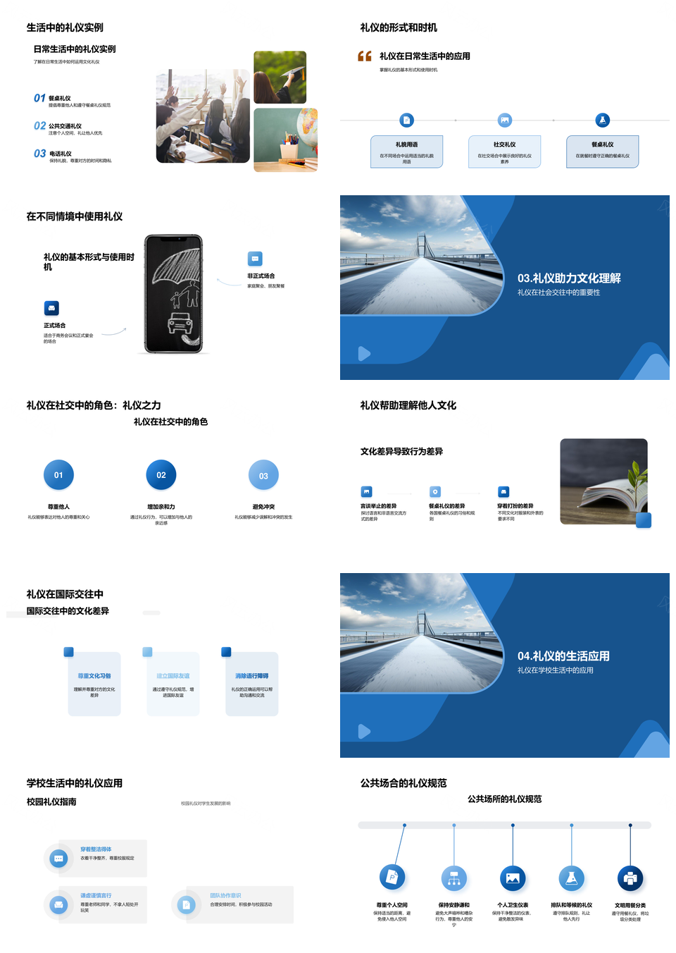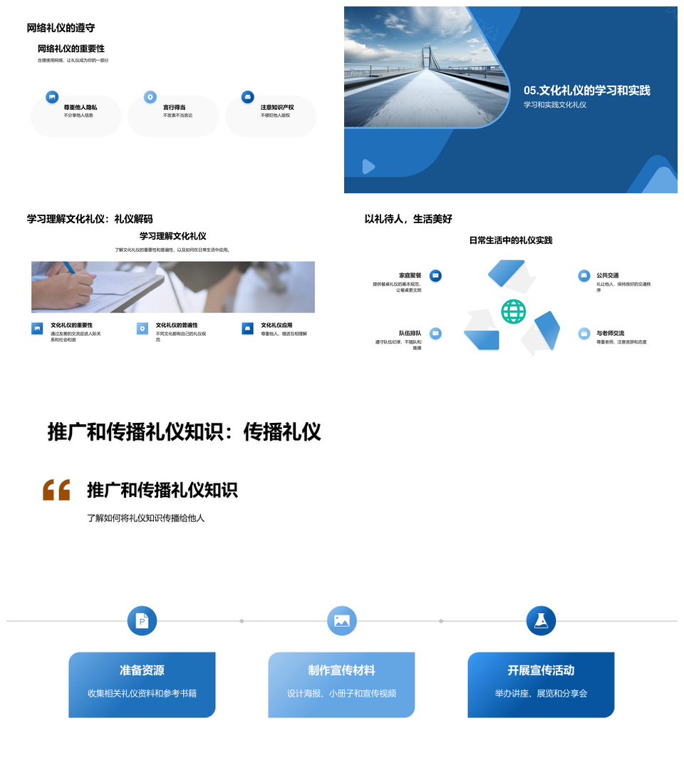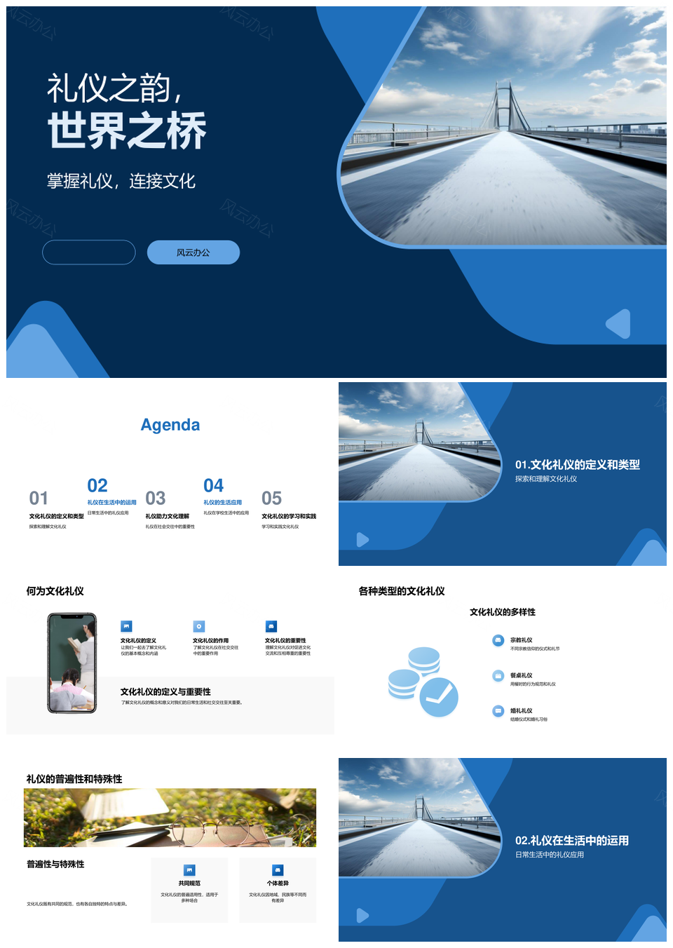 风云办公提供的礼仪师生桥连世界社会教育日常PPT模板,下载格式为pptx,一共23页,作品中文字及图均可以修改和编辑,图片更改请在作品中右键图片并更换,文字修改请直接点击文字进行修改。