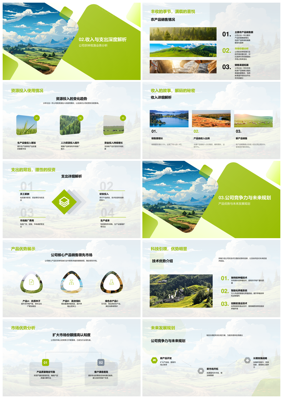风云办公提供的农牧企业市场财务经营核心业务分析PPT模板,下载格式为pptx,一共28页,作品中文字及图均可以修改和编辑,图片更改请在作品中右键图片并更换,文字修改请直接点击文字进行修改。