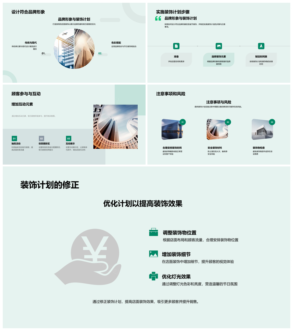 这是一张圣诞店铺视觉营销陈列满足顾客期待品牌形象现代趋势节日氛围PPT模板,包含圣诞店铺、视觉营销、陈列、满足、顾客、期待、品牌、形象、现代、趋势、节日、氛围等主题内容,也可用作圣诞店铺视觉营销陈列满足、视觉营销陈列满足顾客期待、满足顾客期待品牌形象现代趋势、品牌形象现代趋势节日氛围、圣诞店铺视觉营销陈列、视觉营销陈列满足、陈列满足顾客期待、顾客期待品牌形象现代趋势、品牌形象现代趋势节日氛围、顾客期待品牌形象、品牌形象现代趋势、现代趋势节日氛围、节日氛围圣诞店铺、圣诞店铺视觉营销、陈列满足顾客期待等PPT场景使用。 风云办公提供的圣诞店铺视觉营销陈列满足顾客期待品牌形象现代趋势节日氛围PPT模板,下载格式为pptx,一共33页,作品中文字及图均可以修改和编辑,图片更改请在作品中右键图片并更换,文字修改请直接点击文字进行修改。