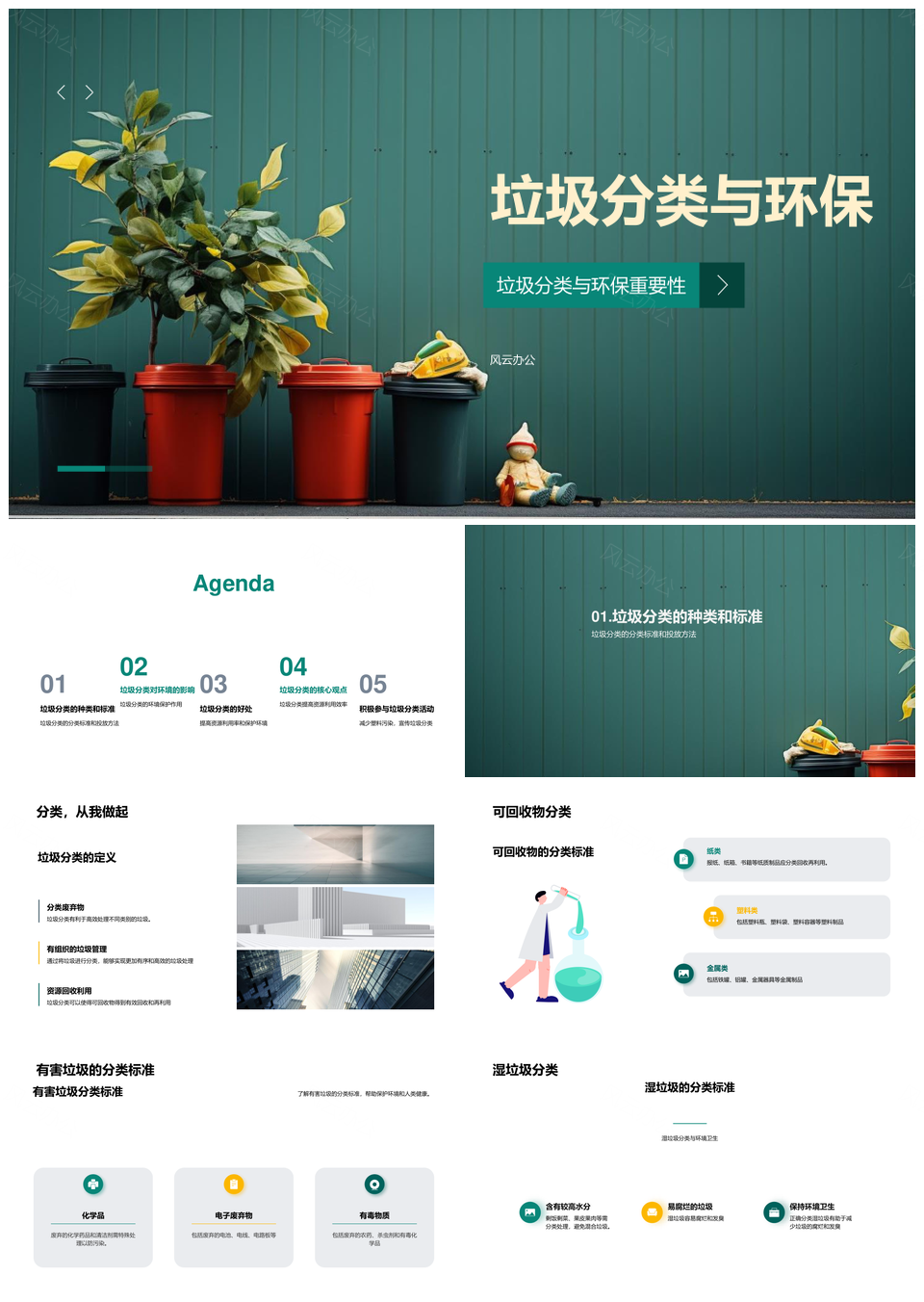 垃圾分类环保行动资源回收处理教育标准PPT模板