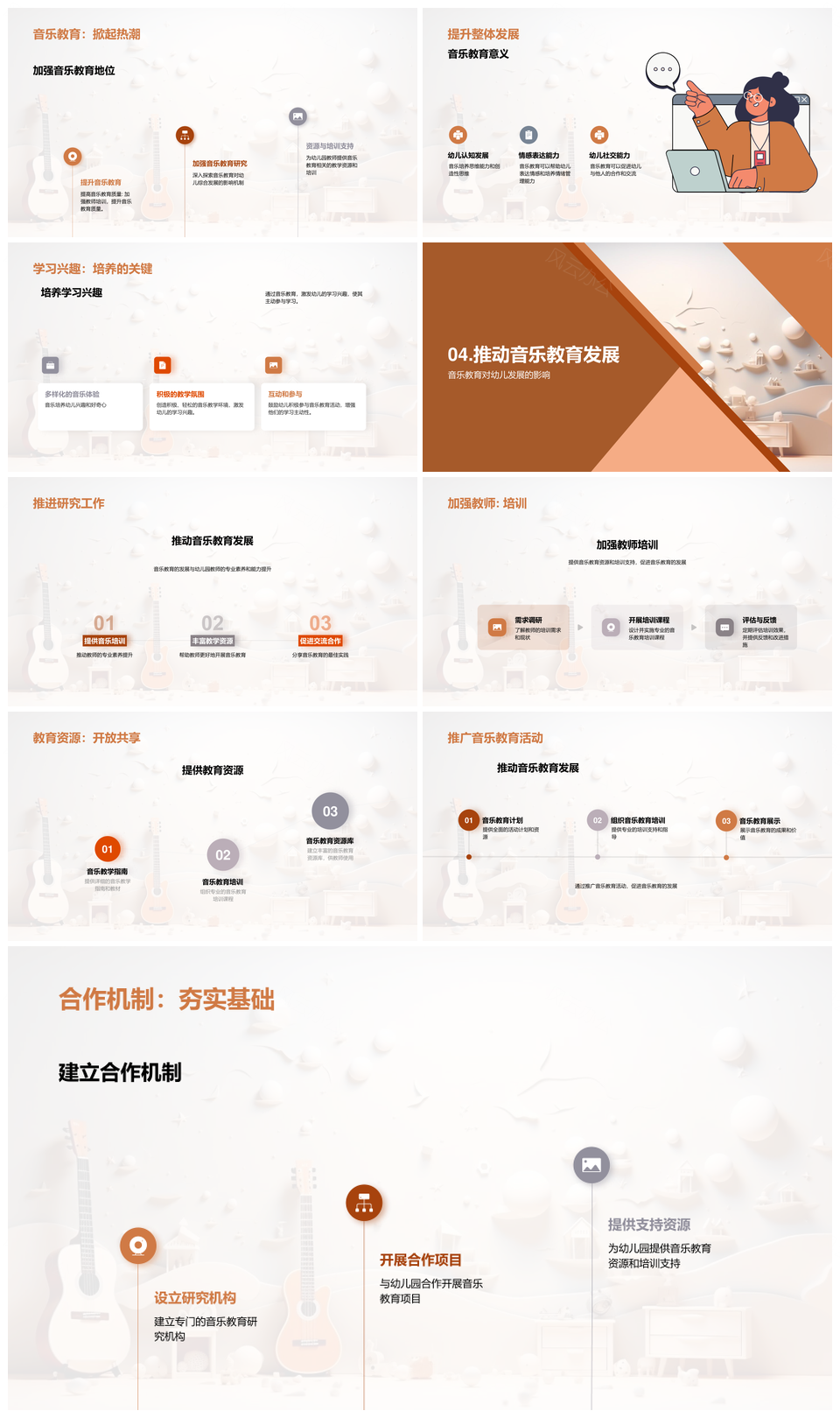 这是一张音乐教育助力幼儿综合发展PPT模板,包含音乐教育、助力、幼儿、综合发展等主题内容,也可用作音乐教育助力幼儿综合发展、音乐教育助力幼儿、教育助力幼儿综合发展、音乐教育综合发展、幼儿综合发展教育、音乐教育助力、教育助力幼儿、音乐教育幼儿、助力幼儿综合发展、教育幼儿综合发展、教育助力综合发展、音乐教育、教育助力、助力幼儿、幼儿综合发展等PPT场景使用。