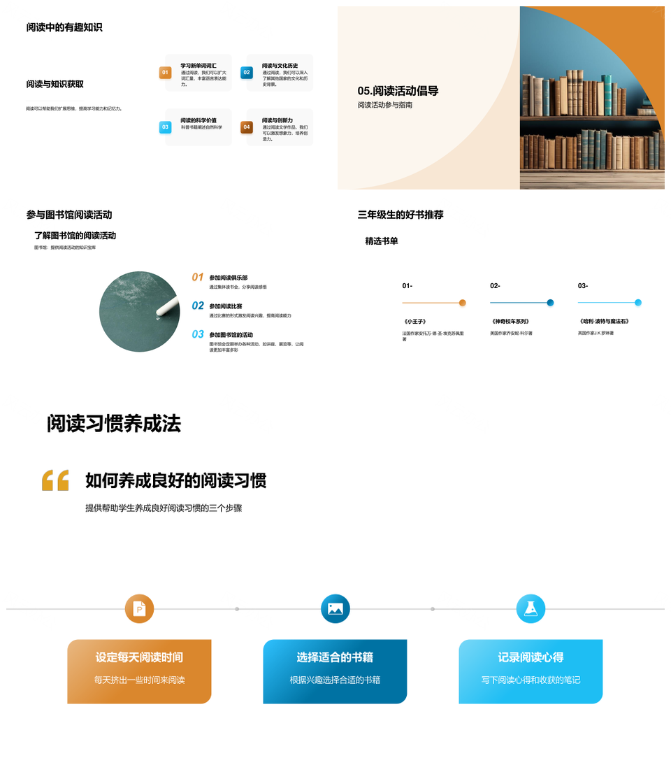 风云办公提供的三年级阅读之旅拓视野启思考力PPT模板,下载格式为pptx,一共23页,作品中文字及图均可以修改和编辑,图片更改请在作品中右键图片并更换,文字修改请直接点击文字进行修改。