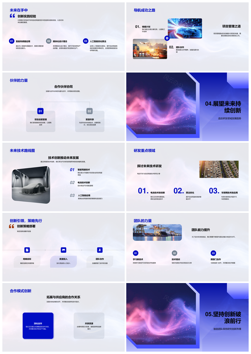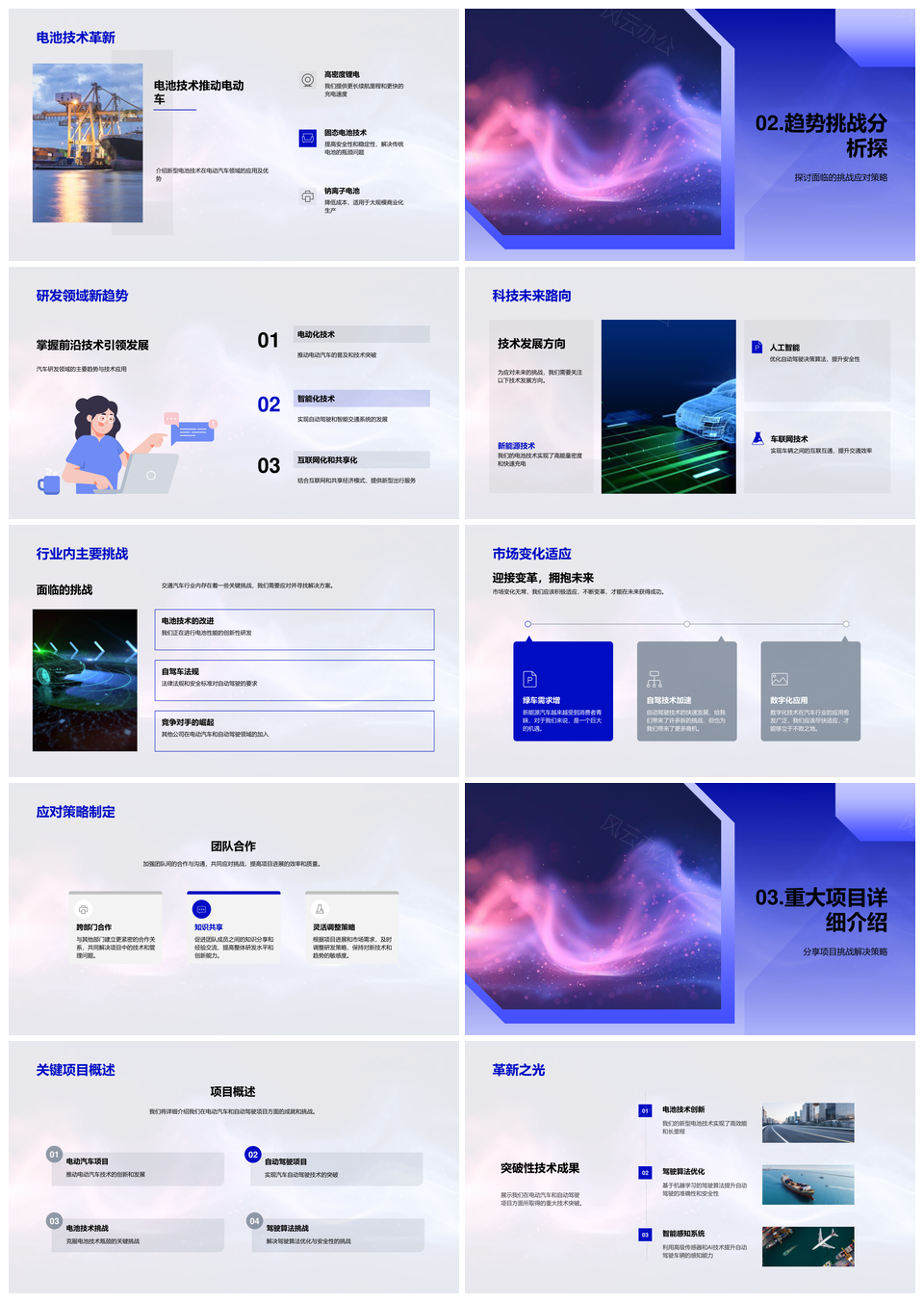 这是一张汽车研发年度电动自动驾驶技术趋势挑战应对PPT模板,包含汽车、研发、年度、电动、自动驾驶、技术、趋势、挑战、应对等主题内容,也可用作汽车研发年度电动、研发年度电动自动驾驶、年度电动自动驾驶技术、电动自动驾驶技术趋势、自动驾驶技术趋势挑战、技术趋势挑战应对、汽车研发年度、研发年度电动、年度电动自动驾驶、电动自动驾驶技术、自动驾驶技术趋势、技术趋势挑战、趋势挑战应对、汽车研发、研发年度、年度电动、电动自动驾驶、自动驾驶技术、技术趋势、趋势挑战、挑战应对等PPT场景使用。 风云办公提供的汽车研发年度电动自动驾驶技术趋势挑战应对PPT模板,下载格式为pptx,一共33页,作品中文字及图均可以修改和编辑,图片更改请在作品中右键图片并更换,文字修改请直接点击文字进行修改。