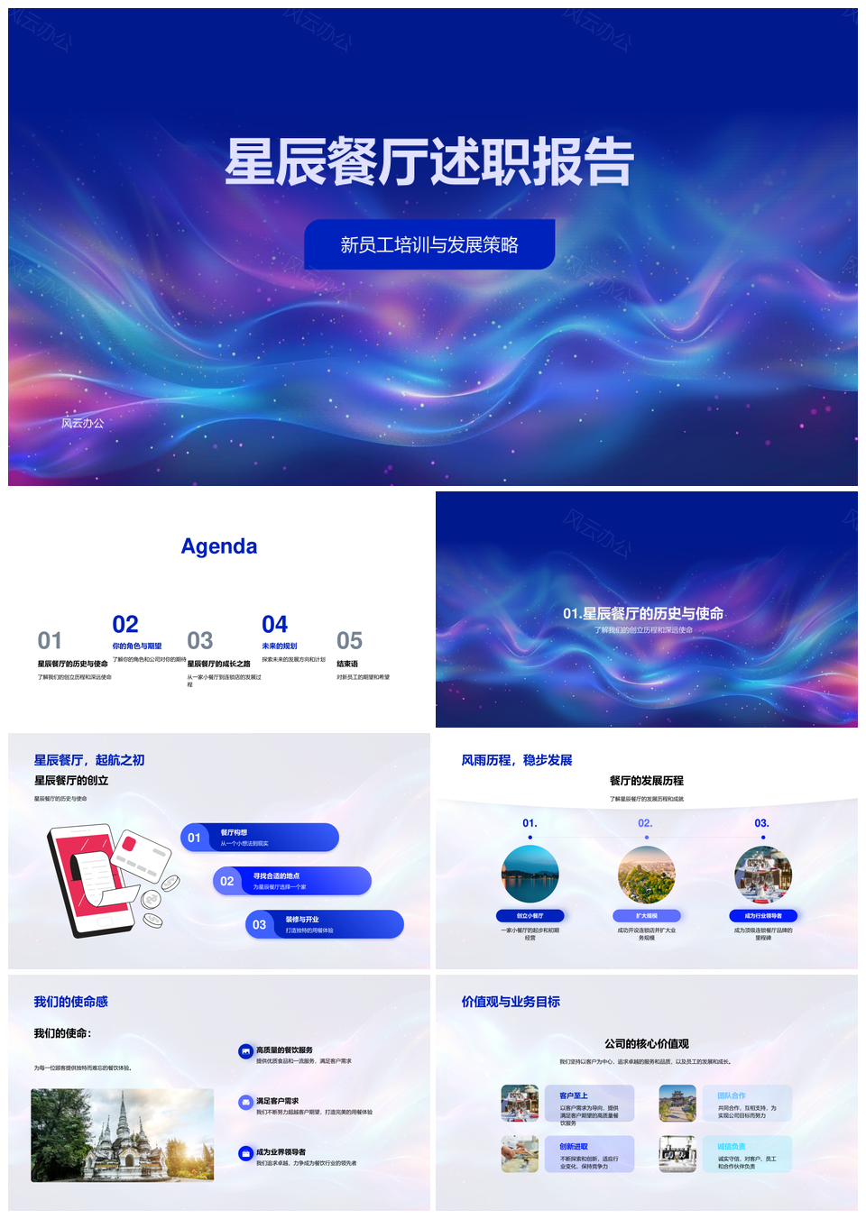 星辰餐厅新员工培训发展策略餐饮服务职责目标述职PPT模板推荐